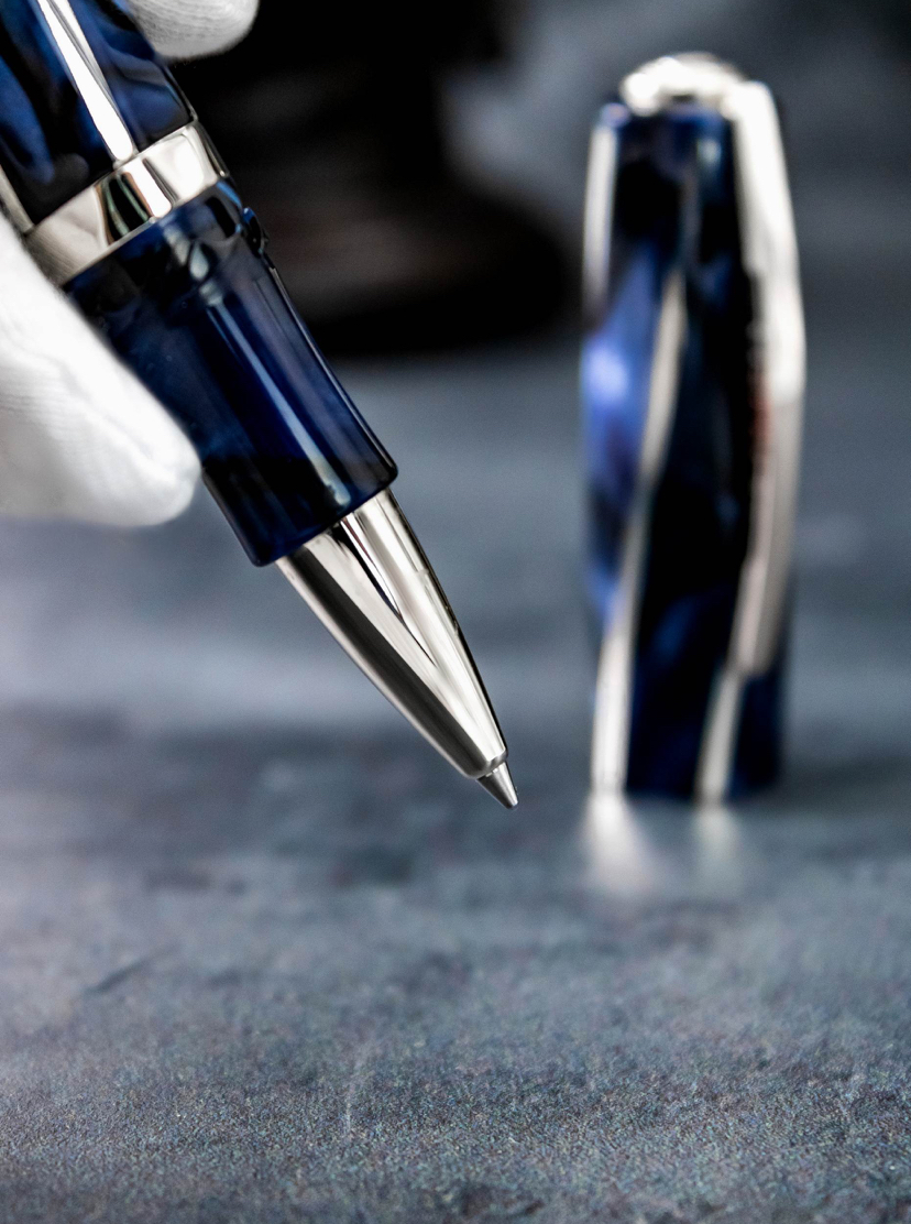Для изготовления этих письменных принадлежностей используется драгоценная смола с добавлением перламутра. Серебряные грани в них вставляют ювелиры Флоренции. Это очень тонкая работа, требующая мастерства.
