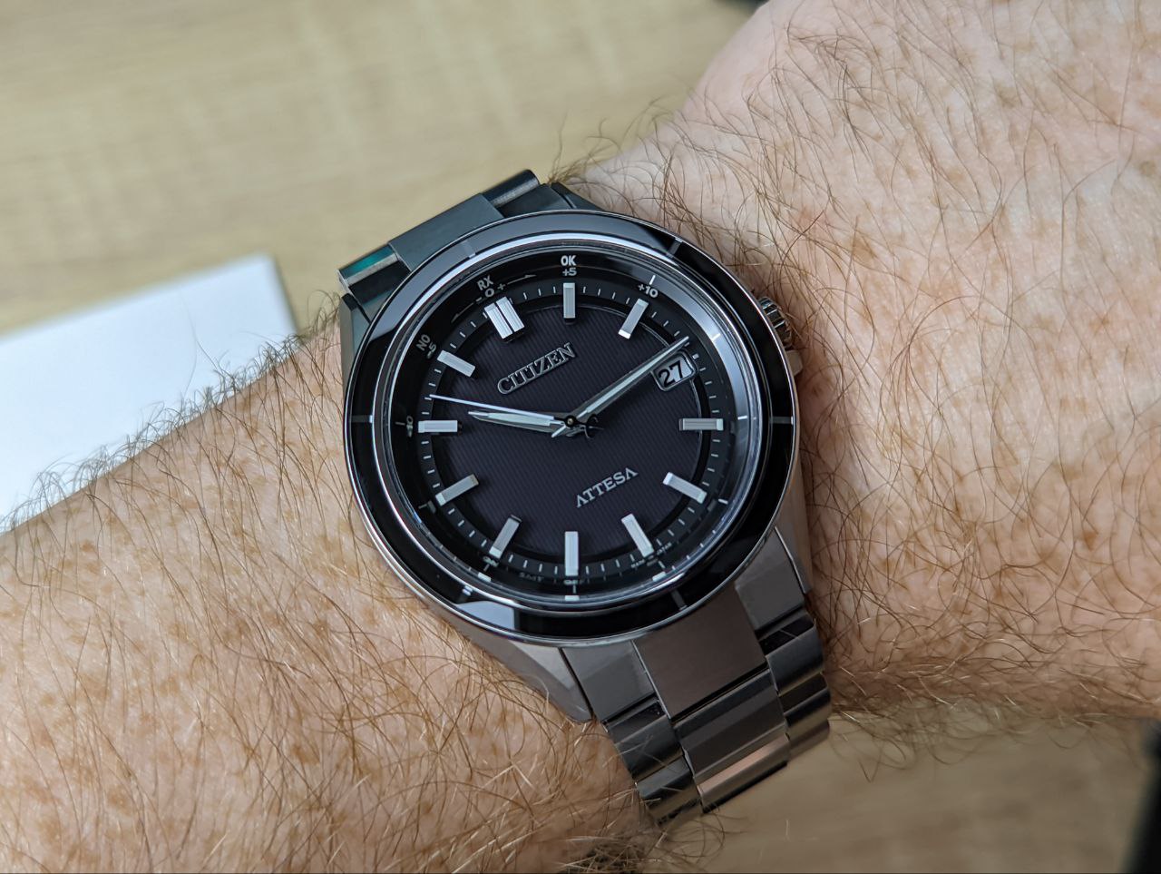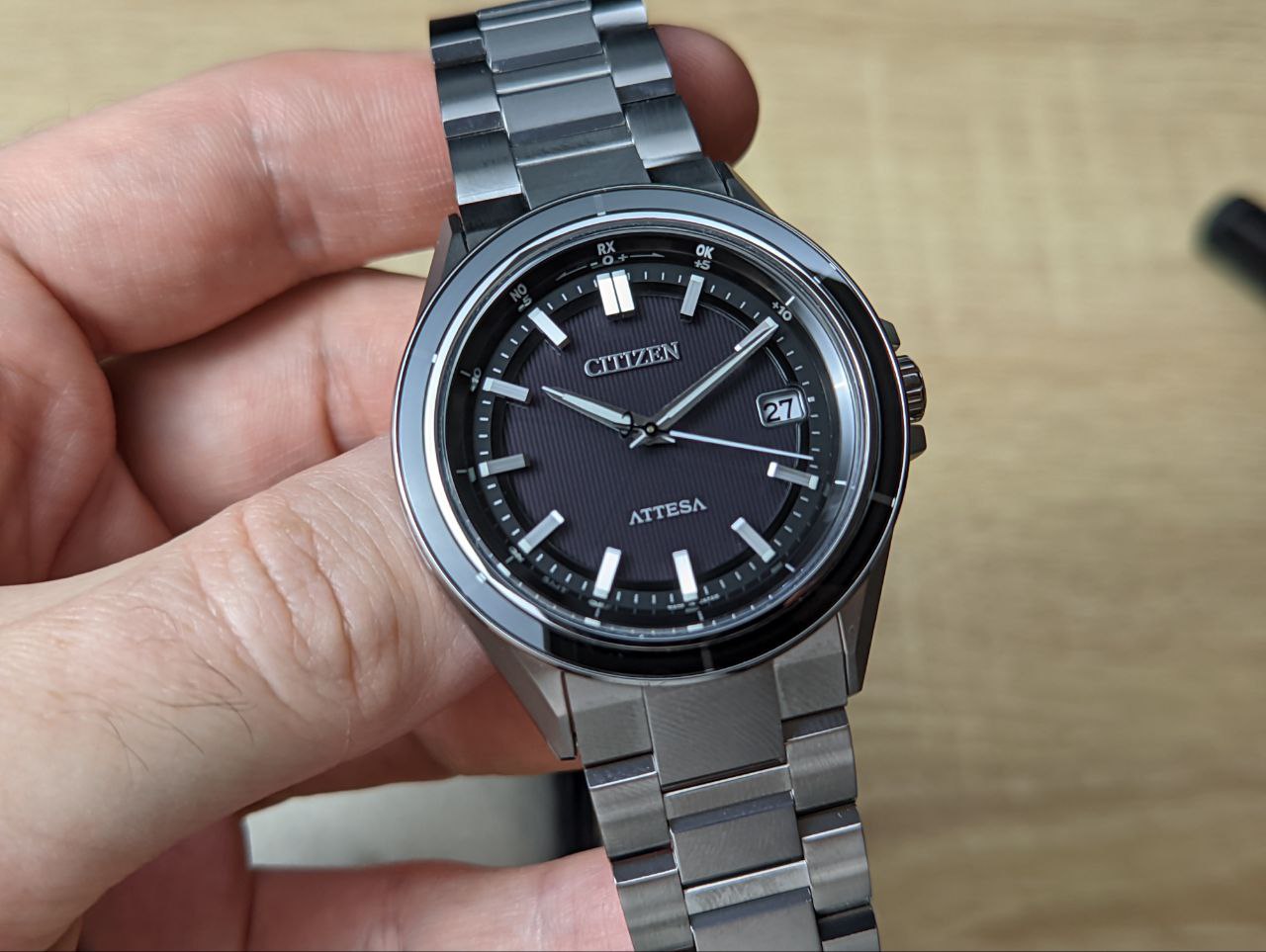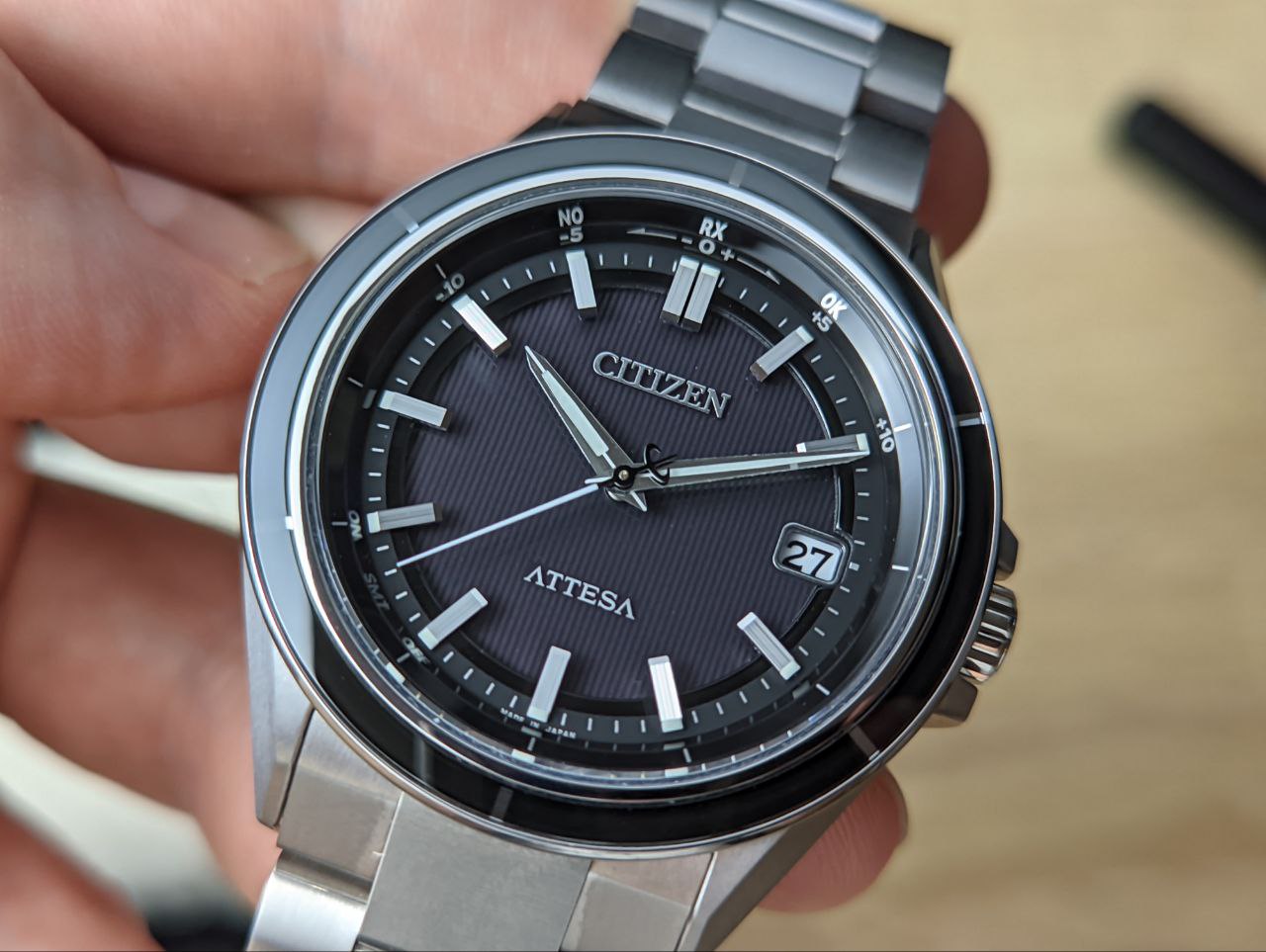 Красивейшая модель серии Attesa из титана, покрытого специальным напылением Duratect, защищающим часы от царапин.