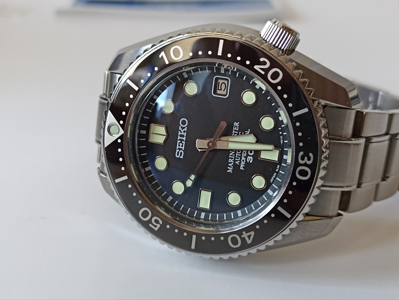 Автоматический дайвер из топовой японской линейки MarineMaster, почти полностью воспроизводит легендарные дайверы Seiko 6215-7000 1967 года и 6159-7001 1968 года.