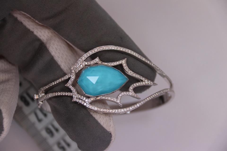 Неспешно продается новый золотой браслет с бирюзой и бриллиантами