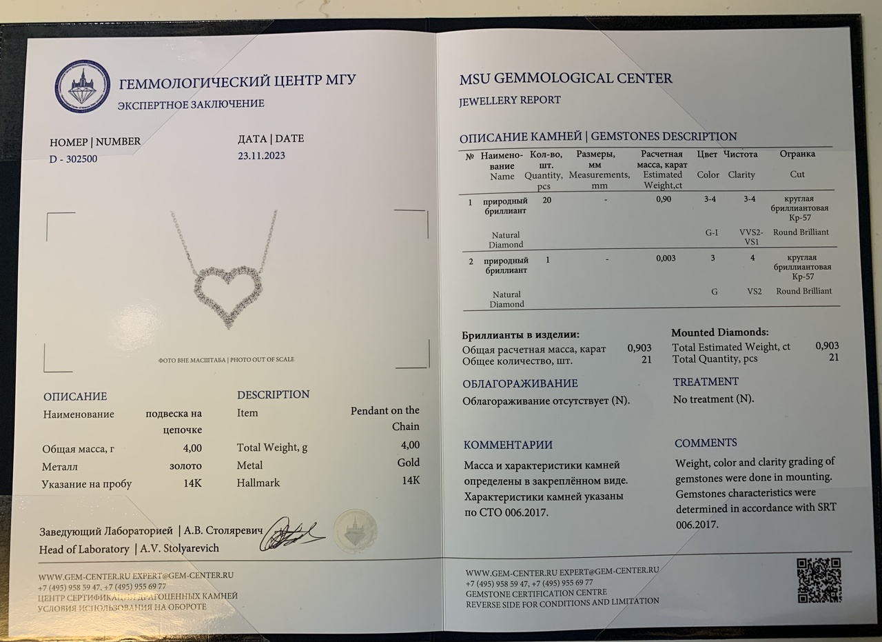 Подвеска сердце белое золото с бриллиантами 0.90ct VVS2-VS1 новая (сертификат МГУ) недорого