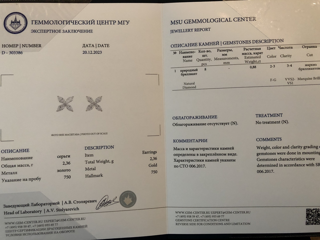 Серьги белое золото с бриллиантами 0.88ct (цвет 2-3) новые (сертификат МГУ) недорого