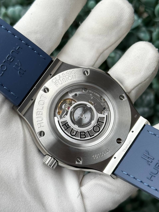 *HUBLOT* CLASSIC FUSION TITANIUM 45 MM 511.NX.7170.LR/ СИНИЙ ЦИФЕРБЛАТ/ КОЖАНЫЙ РЕМЕШОК