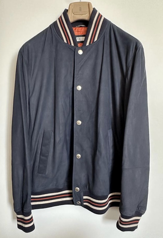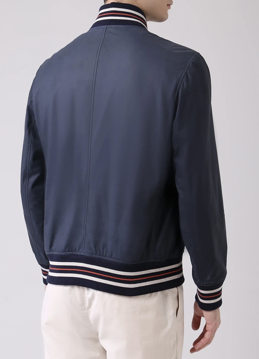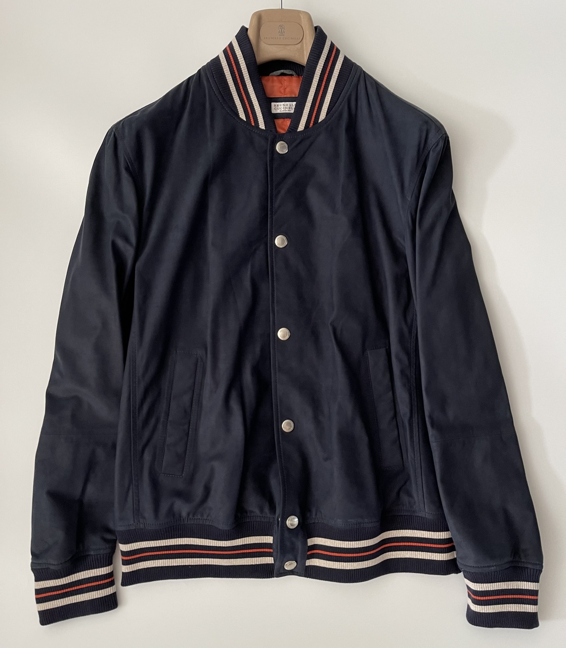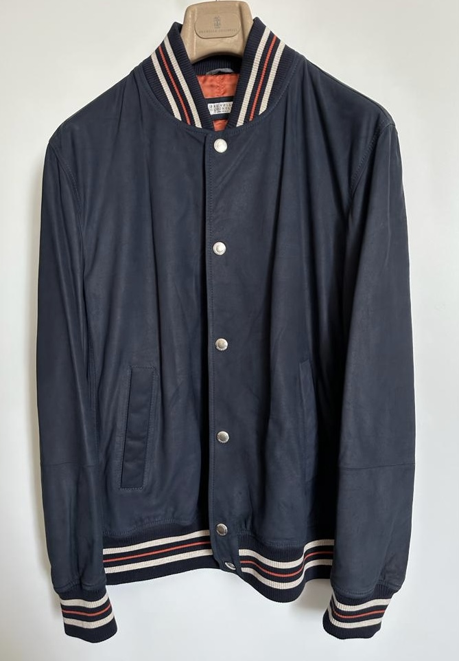 BRUNELLO CUCINELLI новая мужская куртка-бомбер из кожи /цвет тёмно-синий/ (M/50 IT size)