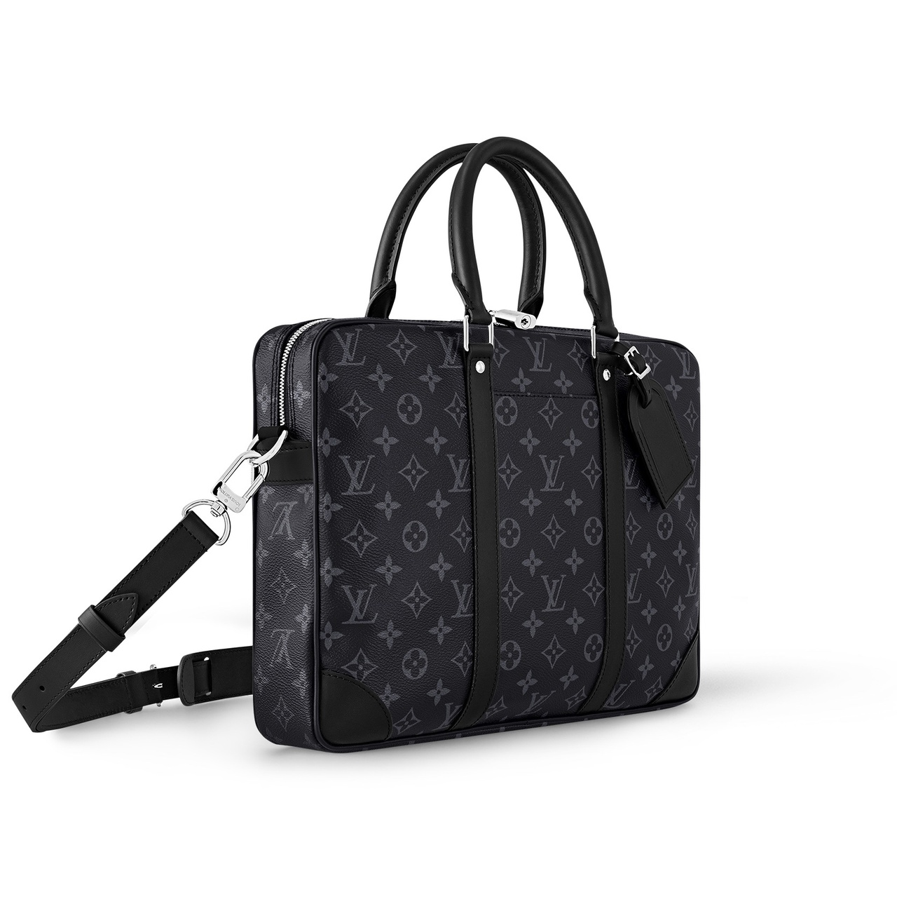 "Стильная монохромная палитра канвы Monogram Eclipse придаёт лаконичному портфелю Voyage особую элегантность. Укрепляющие ремни и уголки из натуральной кожи чёрного цвета подчёркивают структурный дизайн. Классические ручки и съёмный регулируемый ремень позволяют носить сумку в различных удобных вариациях. В новой версии появился практичный внешний карман."