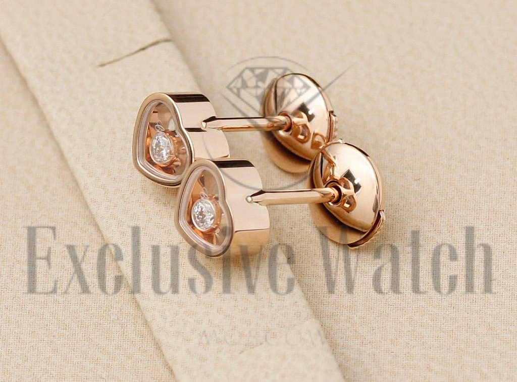 СЕРЬГИ *CHOPARD* MY HAPPY HEARTS 83A086-5092 / РОЗОВОЕ ЗОЛОТО 18К / 2 ПЛАВАЮЩИХ БРИЛЛИАНТА