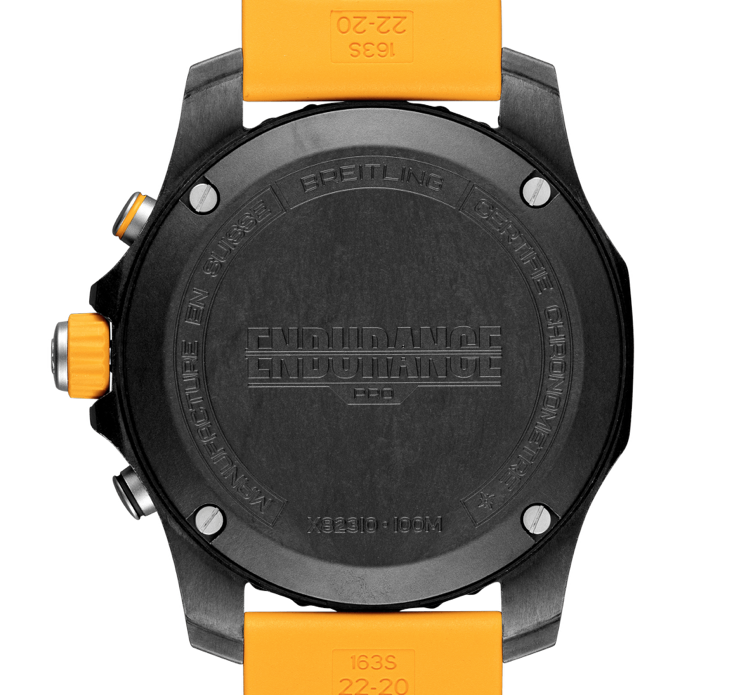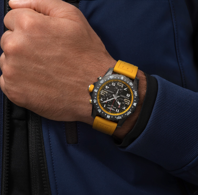 Корпус часов Endurance Pro выполнен из Breitlight® – прочного сверхлегкого материала, вес которого в 3,3 раза меньше, чем у титана, и в 5,8 раза меньше, чем у нержавеющей стали. Этот термически стабильный и гипоаллергенный полимер обладает низкой магнитной восприимчивостью, а также высокой стойкостью к царапинам, износу и коррозии.