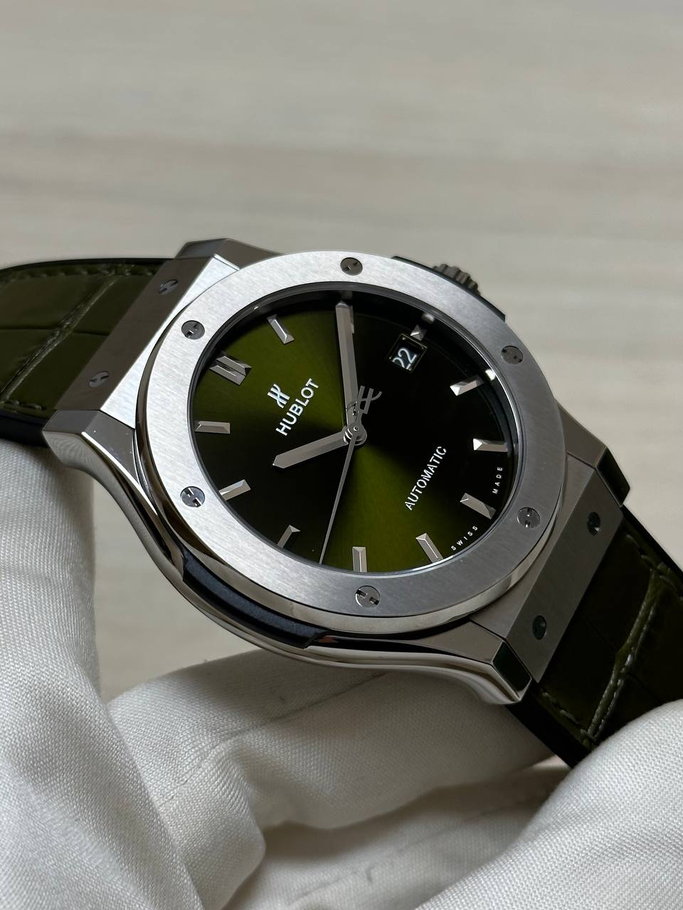 *HUBLOT* CLASSIC FUSION GREEN TITANIUM 42 MM 542.NX.8970.LR