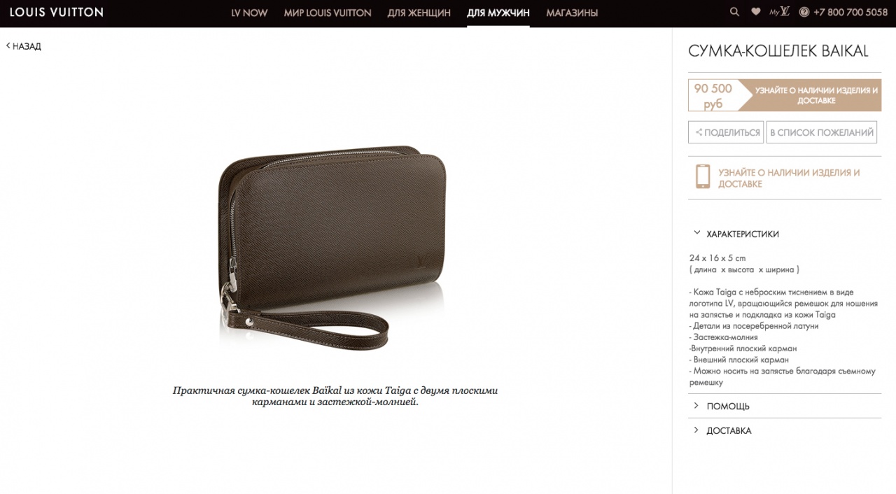 Практичная и вместительная сумка-кошелек Baïkal из знаменитой кожи Taiga обладает просторным внутренним отделением, двумя удобными карманами и надежной застежкой-молнией и станет верным спутником преуспевающего мужчины.