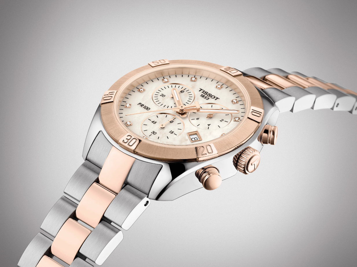 [Женские] TISSOT PR100 Sport Chic Chrono T1019172211600. Биколор / d=38mm / 12 бриллиантов