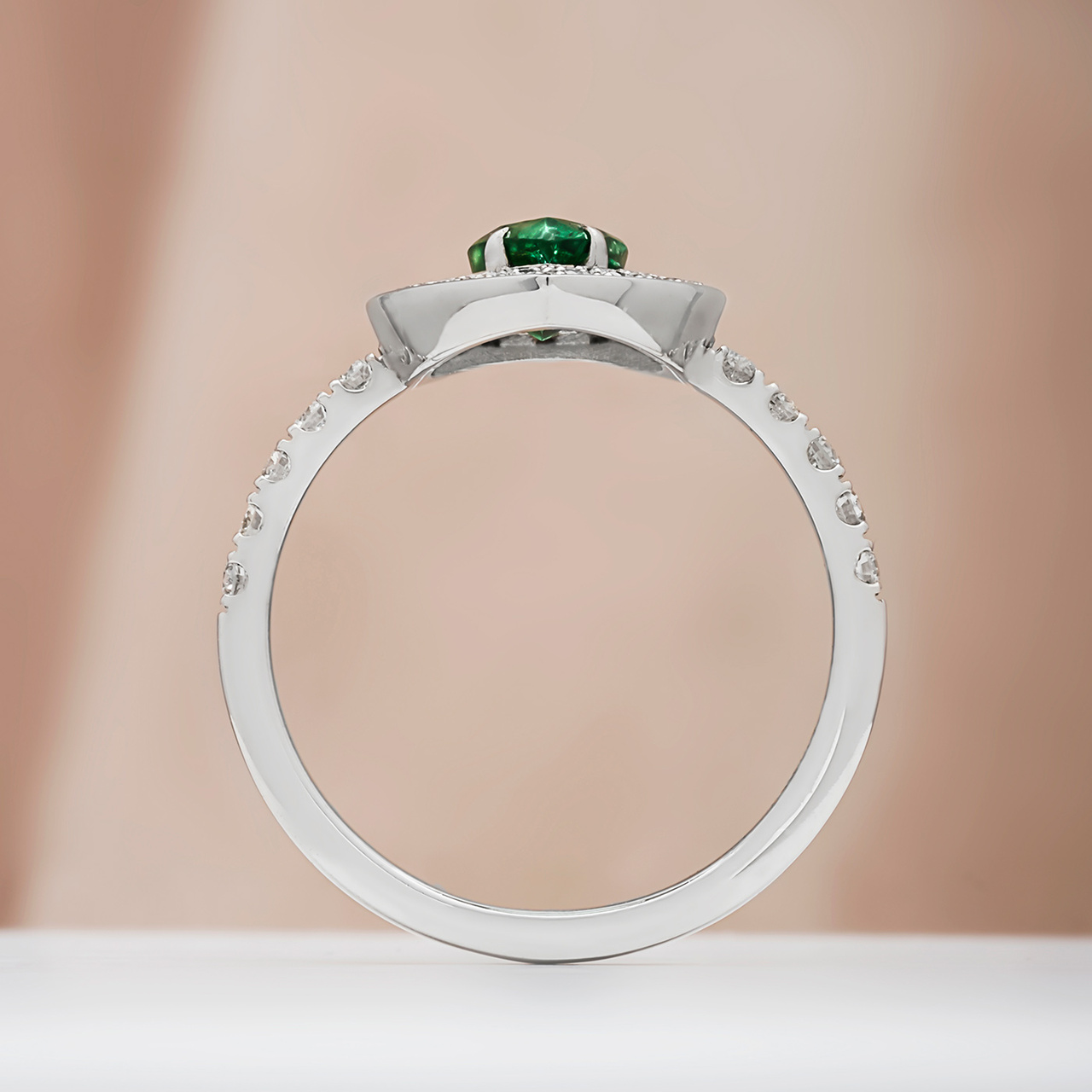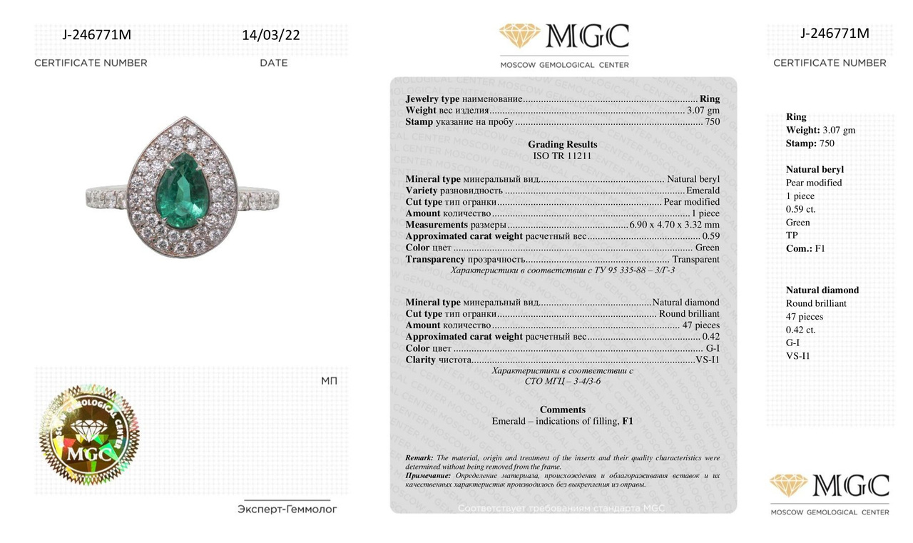 Кольцо из белого золота с изумрудом 0,59 карат и бриллиантами 0,42 карат (сертификат МГЦ)