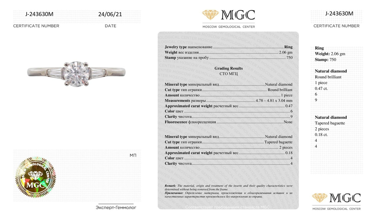 Кольцо из белого золота с бриллиантами 0,65 карат (сертификат МГЦ)