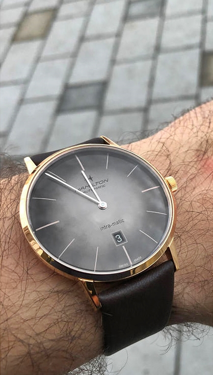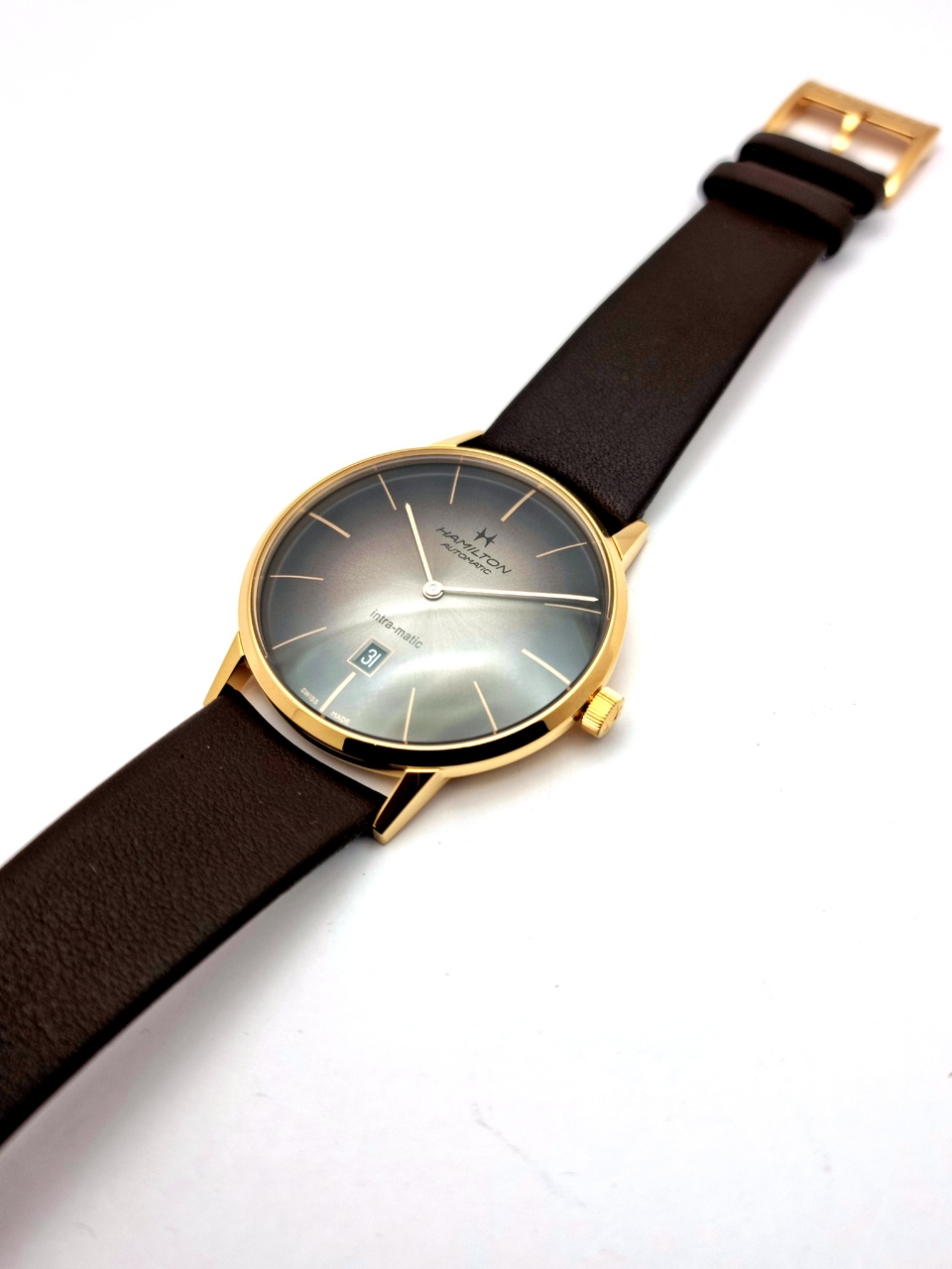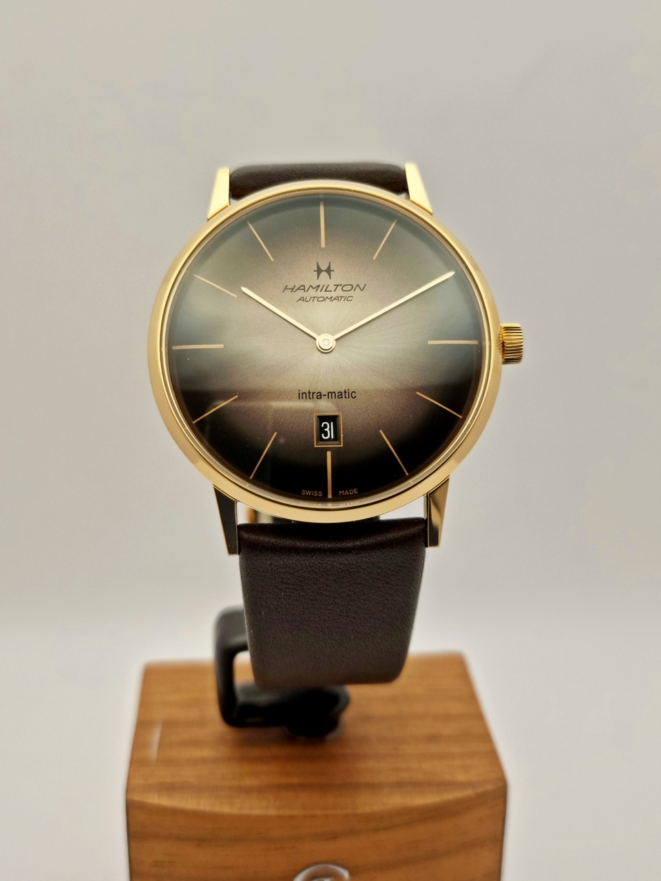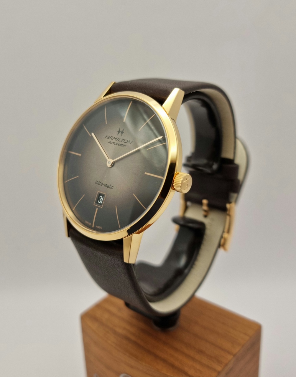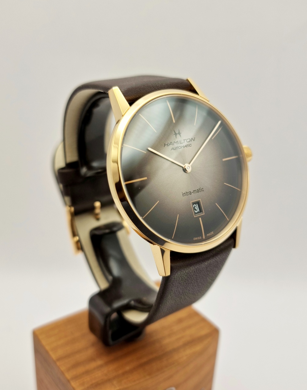Позвольте дымчатым тёмно-коричневым тонам мужских часов Hamilton IntraMatic подчеркнуть ваш повседневный стиль. Круглый корпус диаметром 42 мм из нержавеющей стали с PVD-покрытием цвета желтого золота заключен в устойчивое к царапинам сапфировое стекло. Точный автоматический швейцарский механизм ETA 2892-A2 с 42-часовым запасом хода обеспечивает точное хронометражирование, на работу которого можно просмотреть через заднюю крышку выставочного корпуса. Завершающим штрихом к этим прекрасным часам является темно-коричневый ремешок из натуральной кожи, который подходит для запястий размером до 20 см в обхвате.