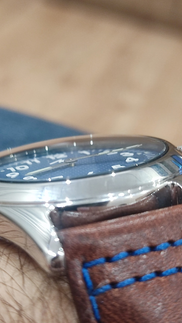 Доброго времени суток, форумчане! Приобрел часы Луч Defender 77430556 ч/з официальный интернет-магазин. Спустя несколько часов после их получения обратил внимание на странное положение минутной стрелки. Она не параллельна циферблату, а наклонена ближе к стеклу и достаточно сильно (фото прилагаю). Эта проблема наблюдается в положении минутной стрелки с 1 до 9 часов на циферблате. С 9 до 1 положение стрелки почти параллельное циферблату, едва заметно отклонение, не критично. Визуально минутная стрелка не цепляет ни стекло, хотя очень близко к нему, ни циферблат, ни часовую стрелку. Стрелки на валу, вроде, ровно сидят Подскажите, пожалуйста, это брак или это нормальное положение минутной стрелки для этого механизма?