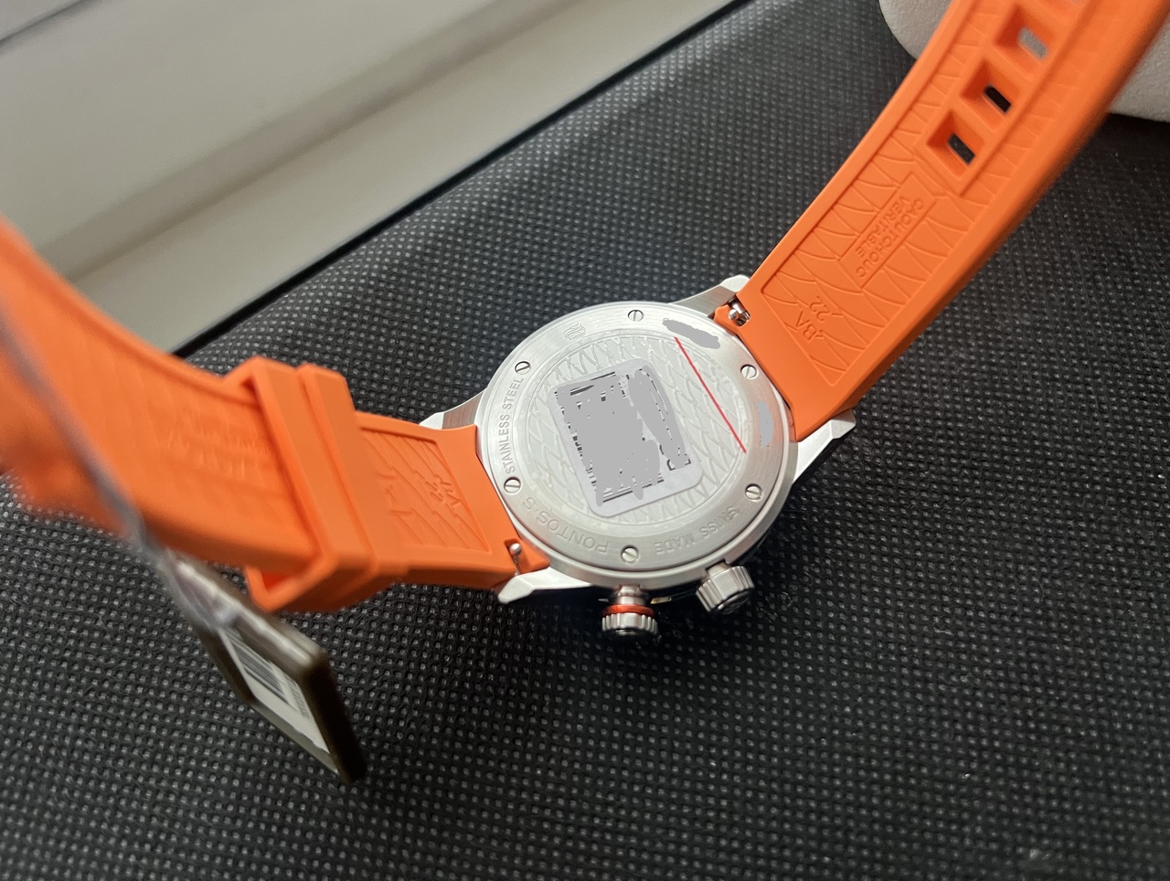 Часы комплектуются ярким, оранжевым каучуком + доп.ремнем.