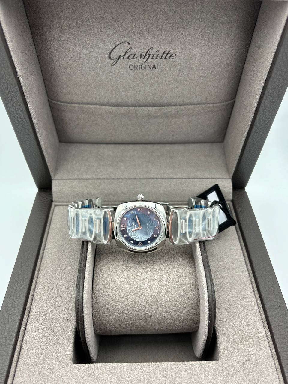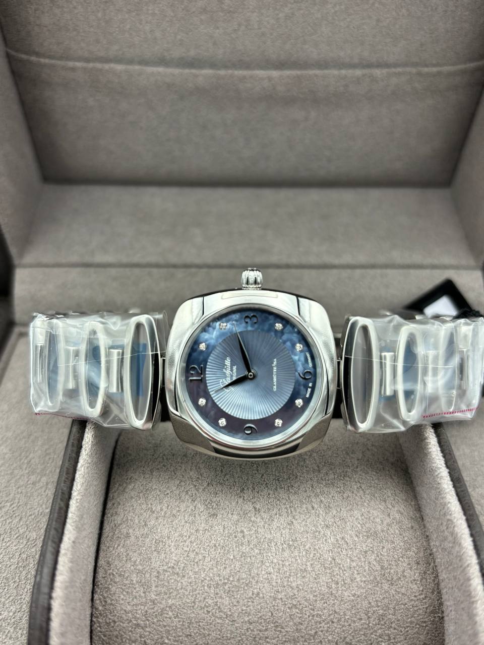 Glashutte Original Pavonina bracelet blue MOP dial diamonds