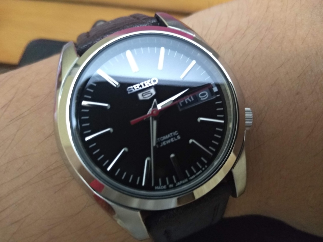 Именно к этой модели знаменитых Seiko 5 присматривался давно, мне очень нравился дизайн корпуса, как и красивый циферблат. А картину довершает красная секундная стрелка. В общем на мой вкус очень красивый и лаконичный дизайн.