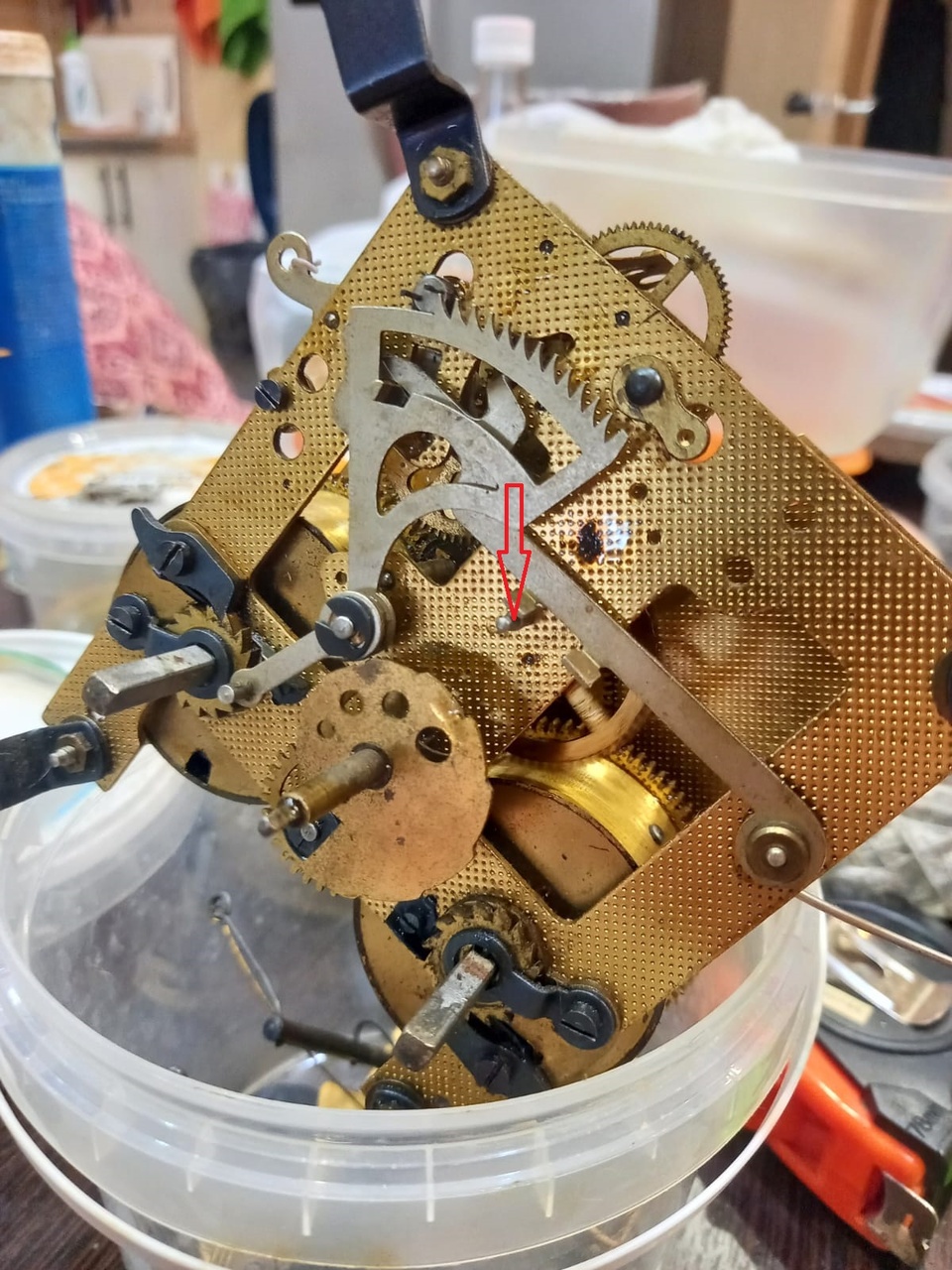 Вопросы такие: 1. Нужны параметры подвеса и маятника(если у кого то есть данные детали то приобрету) 2 . В механизме боя не хватает детали(пометил стрелкой на фото) хотелось бы фото с разных сторон с размерами оной ну или если у кого есть на продажу то приобрету соответственно.