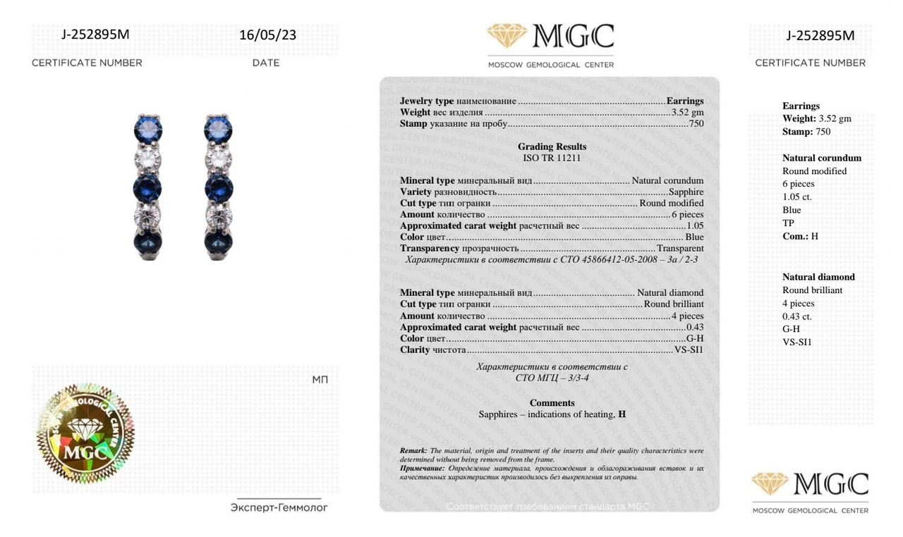 Серьги из белого золота с сапфирами 1,05 карат и бриллиантами 0,43 карат (сертификат МГЦ) - Часовой форум Watch.ru