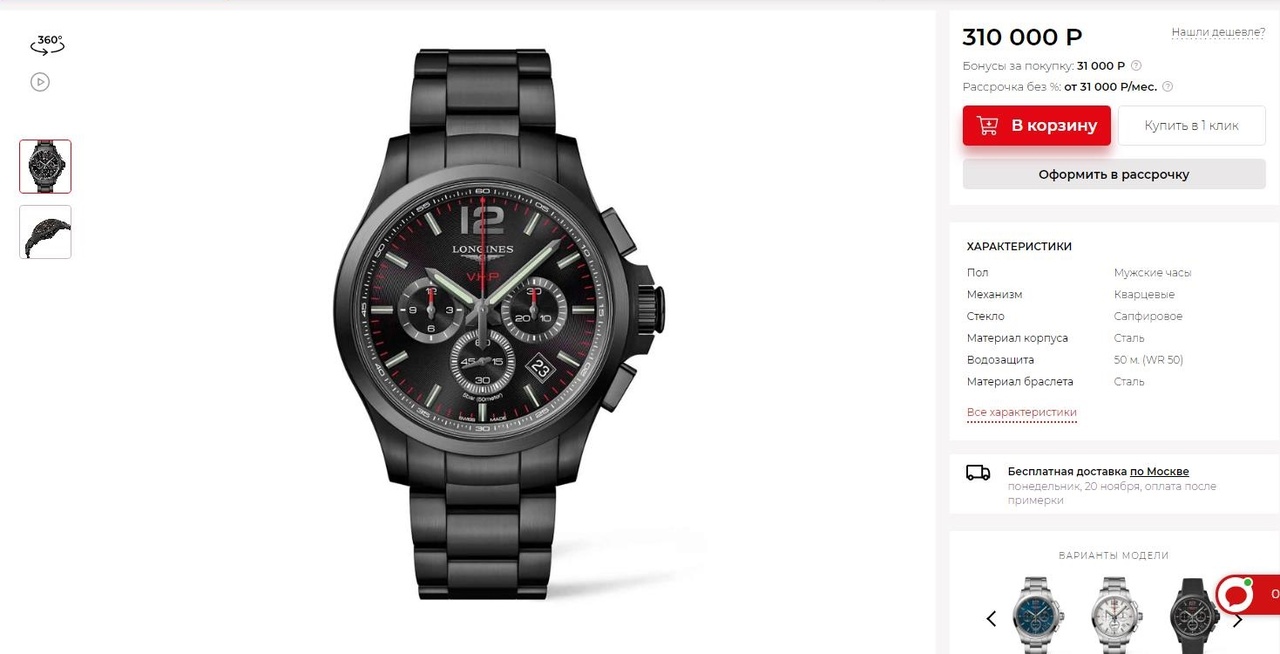 Корпус: РVD покрытие, Нержавеющая сталь 316L