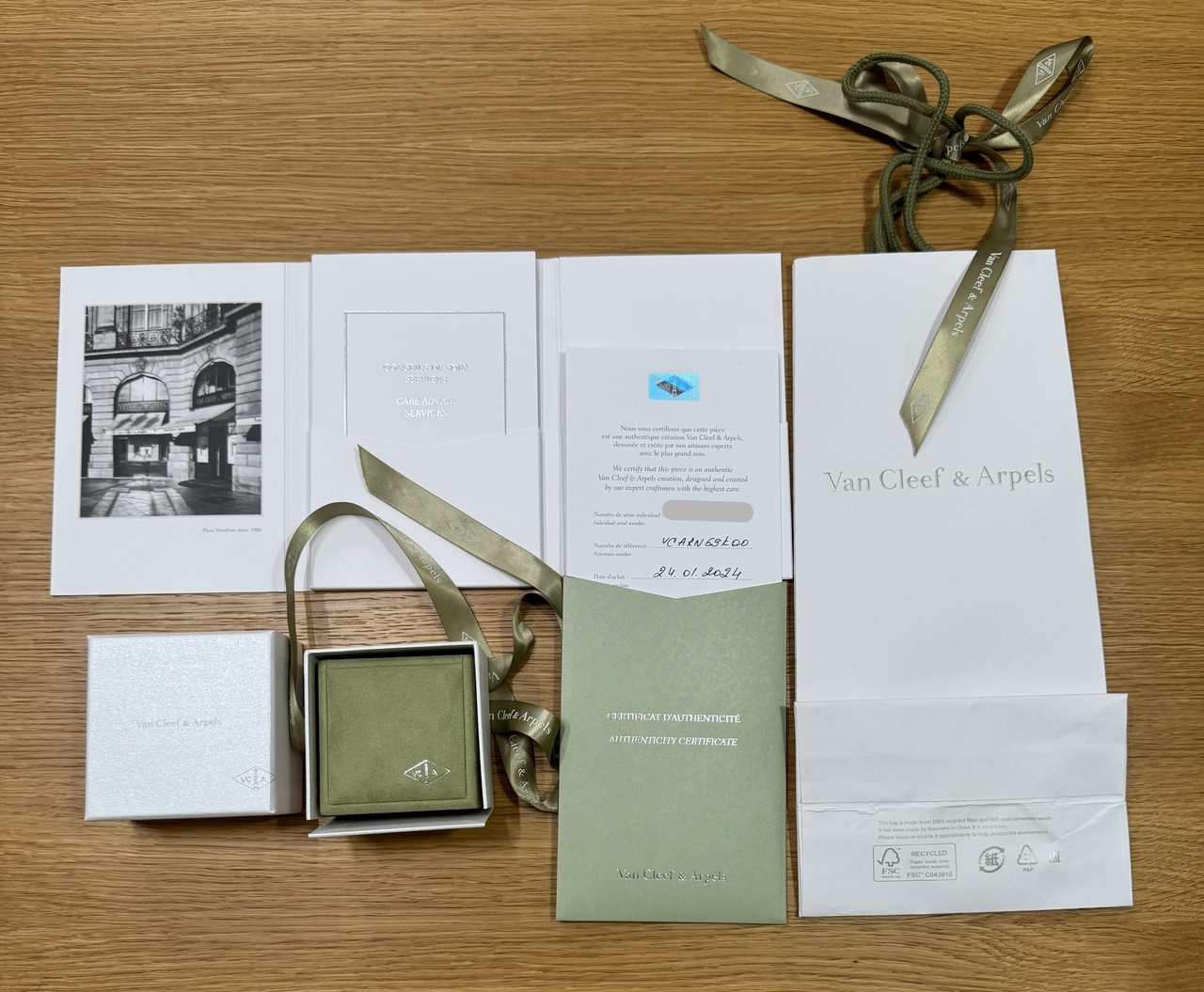 Полный комплект бутика: сертификат, коробка, пакет.