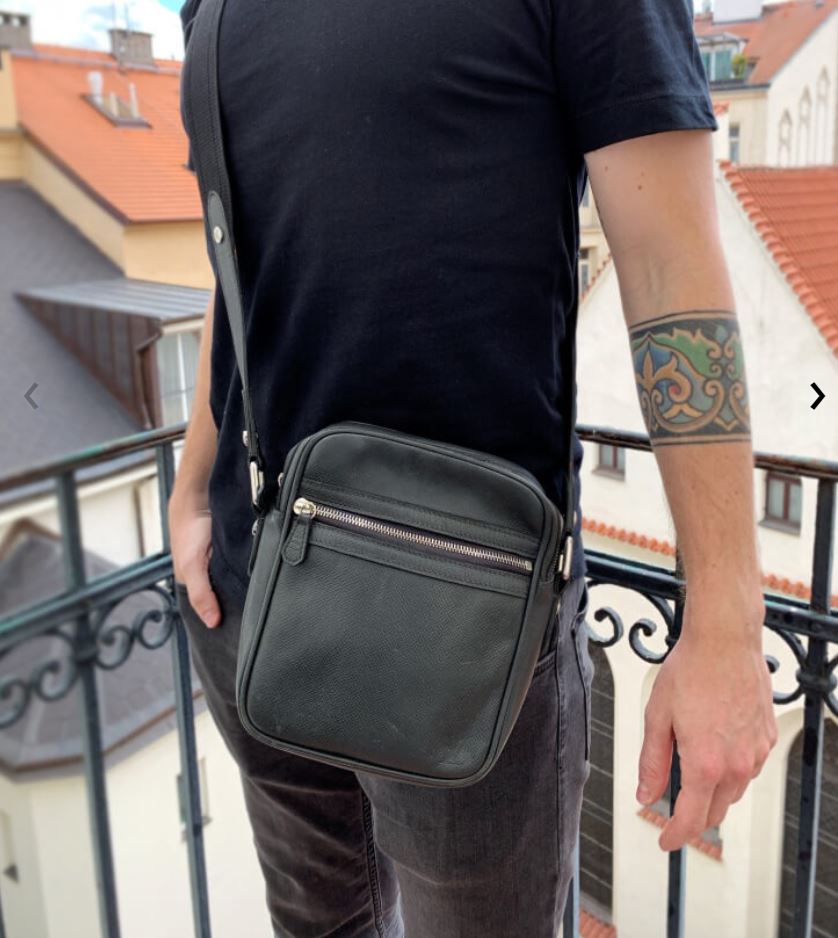 Удобная, компактная Dimitri в коже Taiga. Лаконичный дизайн, наружние передний и задний карманы, регулируемый плечевой ремень.
