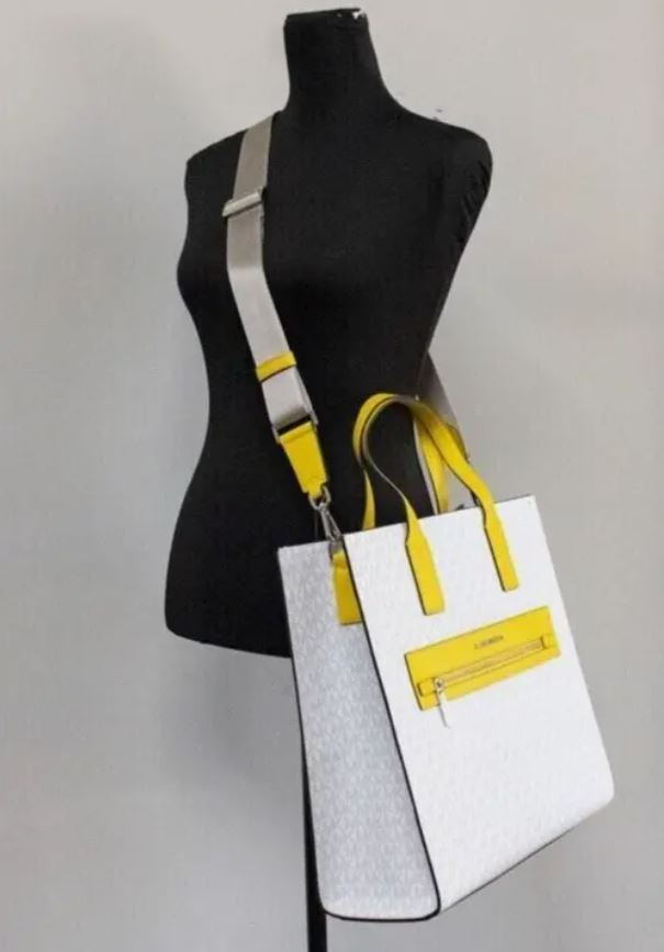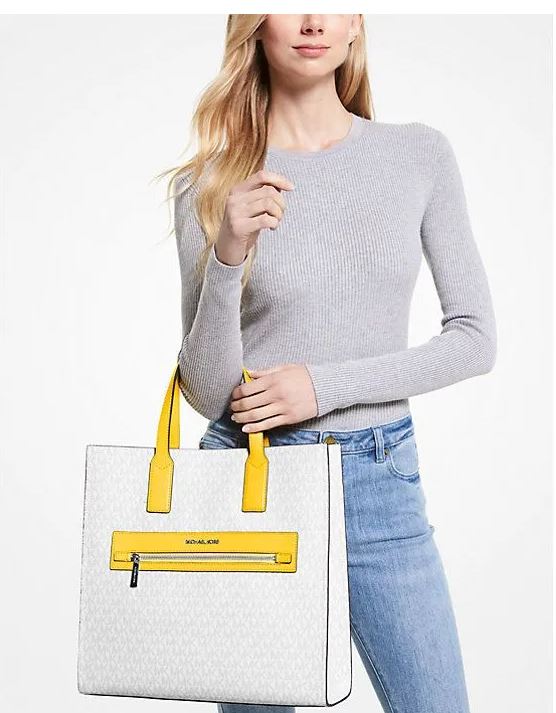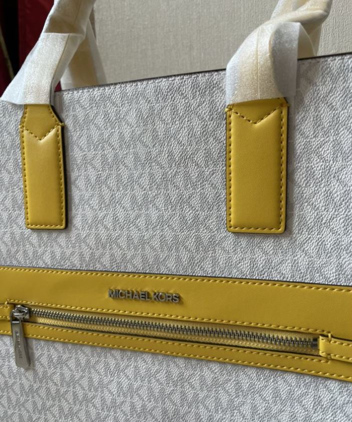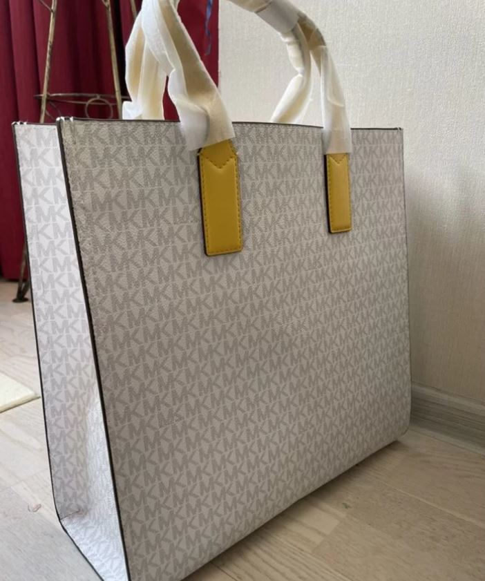 Женская большая сумка MICHAEL KORS KENLY//цвет лета//ваниль с желтыми вставками//на пляж//шоппер//спорт//в дорогу//на дачу