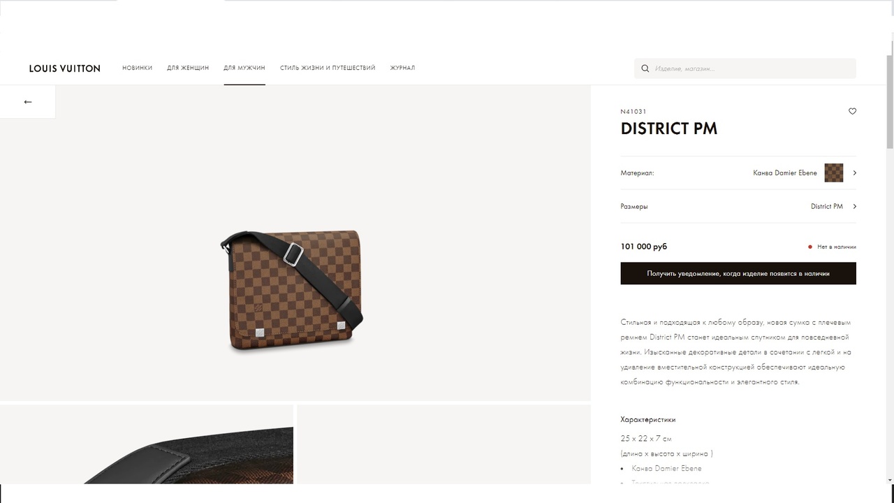 Цена бутика на данную сумку, но в канве Damier Ebene была по старому курсу : 101.000 Рублей