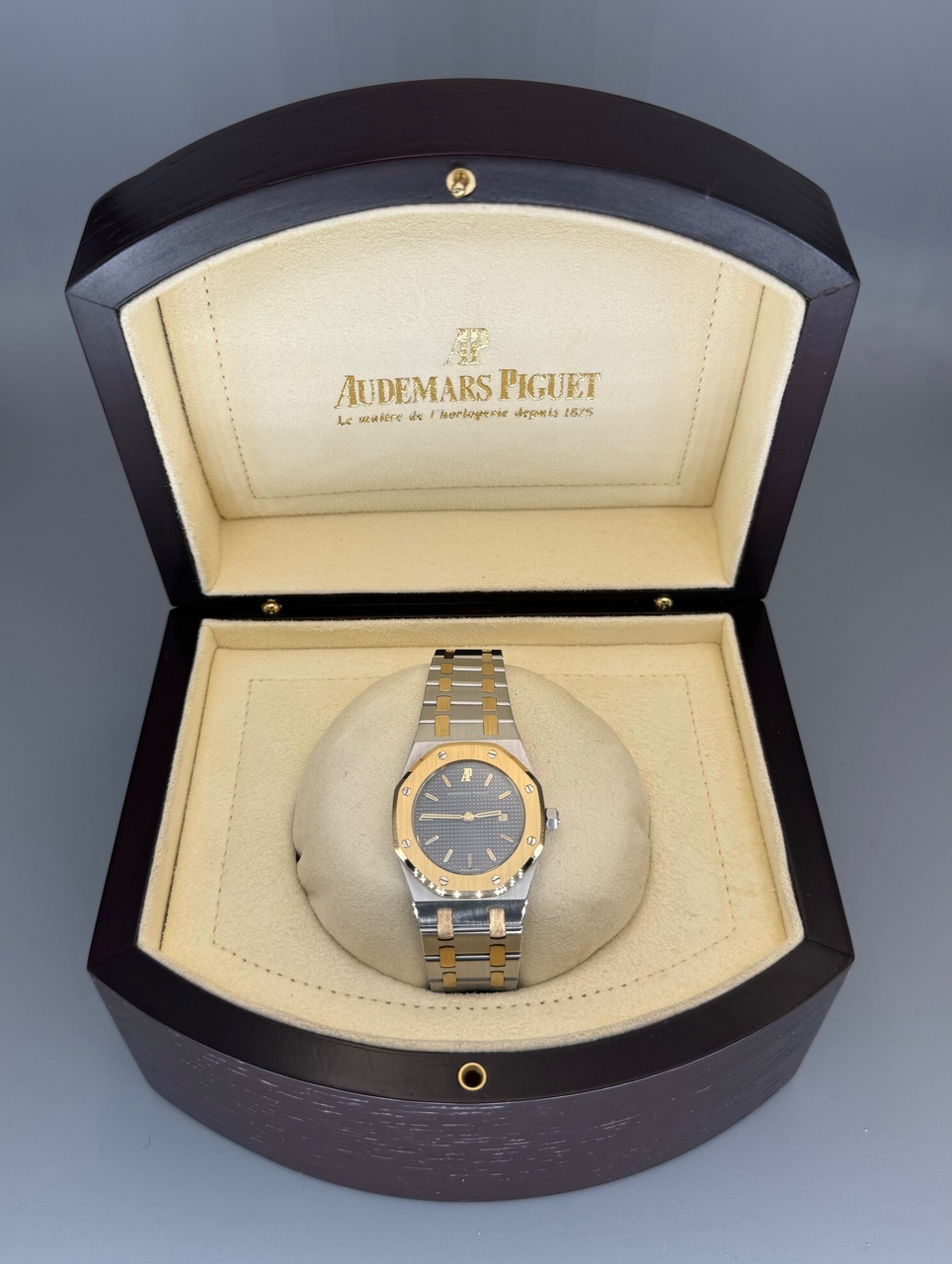 Предлагаются роскошные женские винтажные Audemars Piguet Royal Oak сталь с золотом, иконическая модель в 30 миллиметровом корпусе, выпускавшаяся в разных вариациях с 1980 по 2003 год.