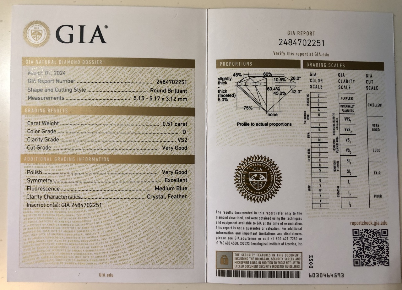 Подвеска белое золото с бриллиантом 0.51ct D/VS2 новая (GIA и МГУ) недорого