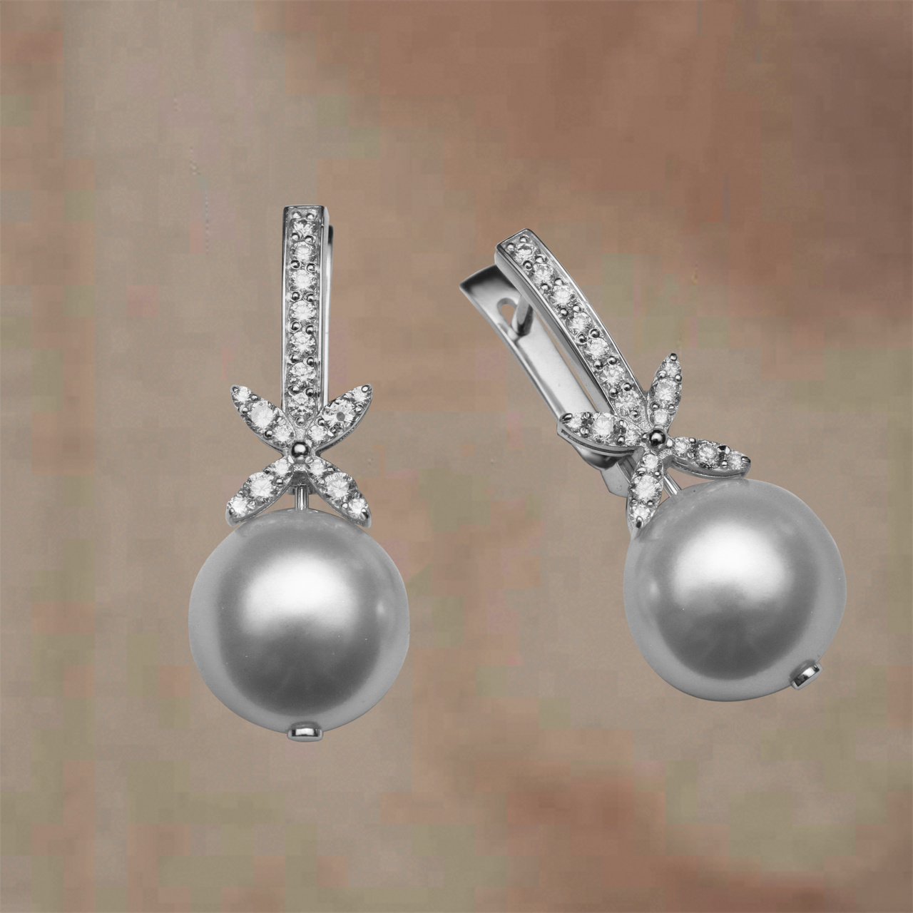 Серьги из белого золота с жемчугом и бриллиантами 0,36 карат (сертификат МГЦ)