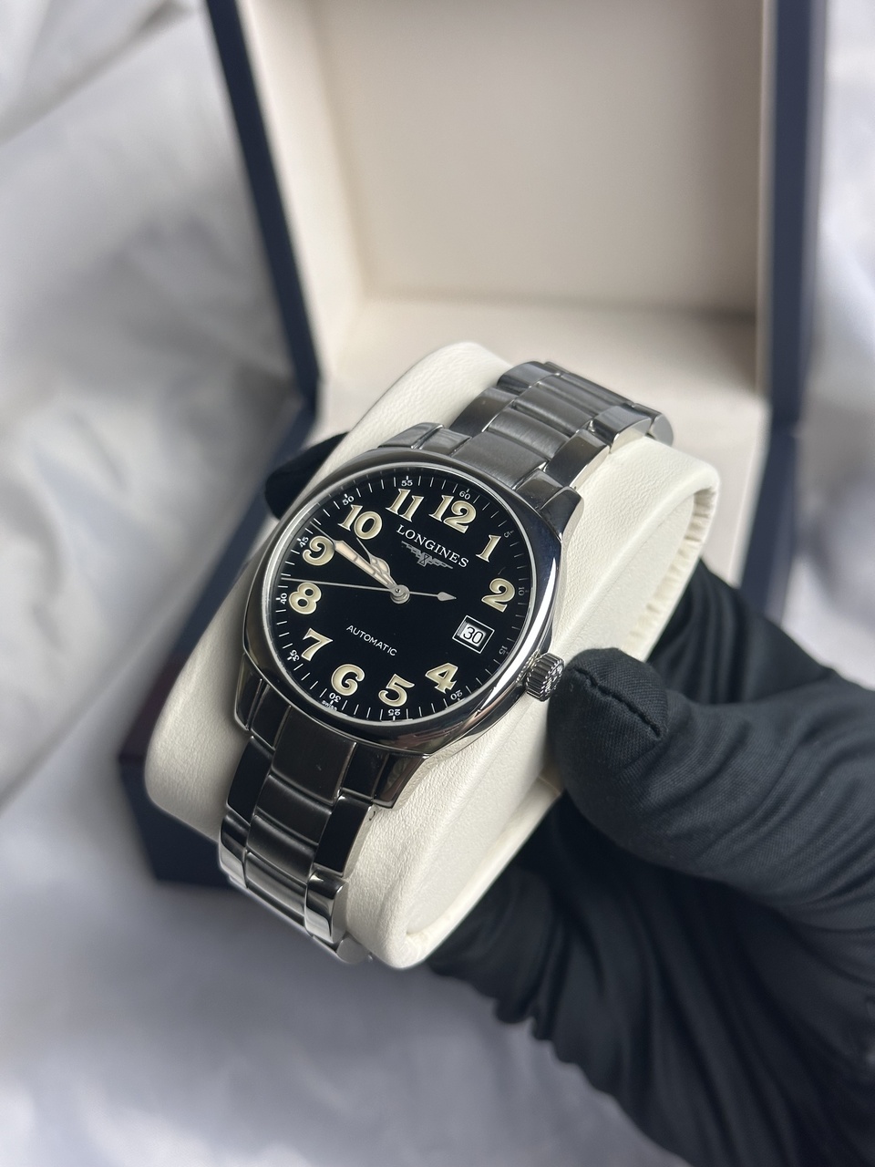 Лакированный циферблат с люминесцентными цифрами, которые светятся в темноте, придаёт этим часам особую изысканность и стиль.