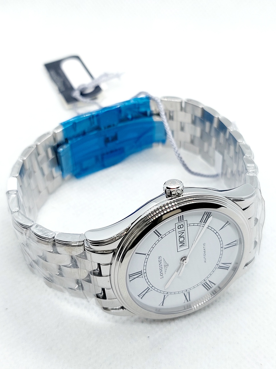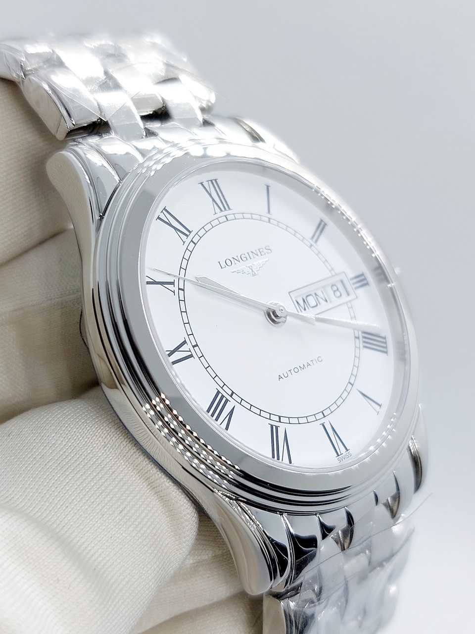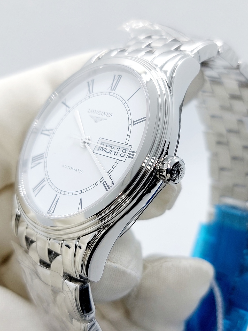 Часы Longines Flagship предлагаются в корпусе диамером 38.5 мм из нержавеющей гипоаллергенной стали 316L серебристого цвета с ювелирной полировкой.