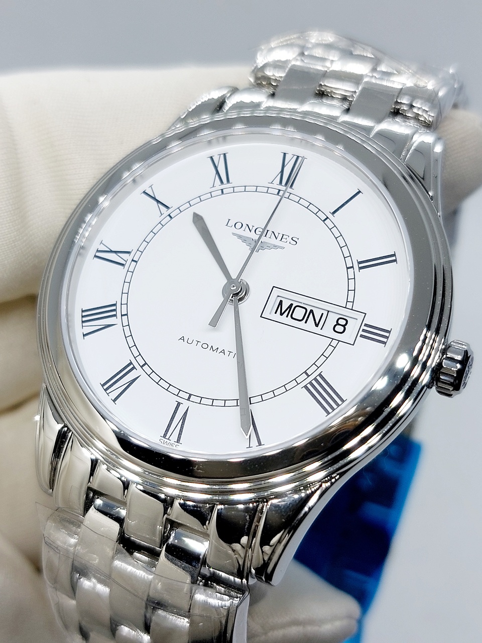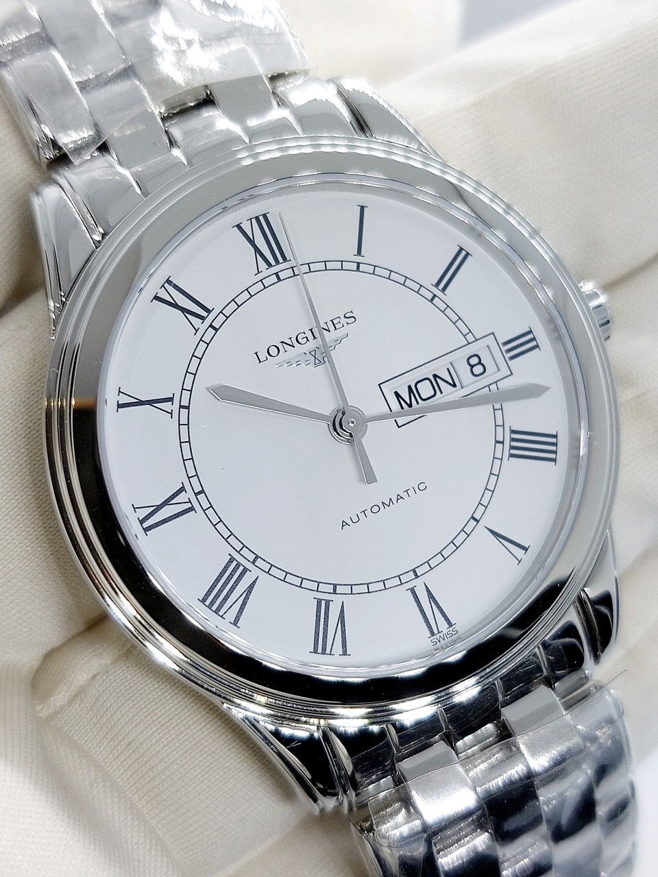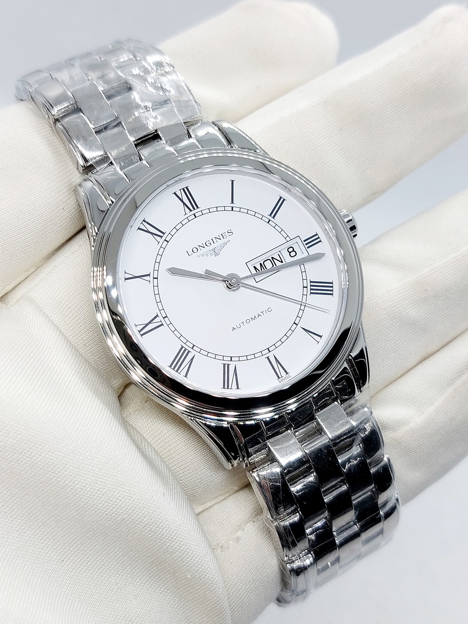 Часы Longines Flagship предлагаются в корпусе диамером 38.5 мм из нержавеющей гипоаллергенной стали 316L серебристого цвета с ювелирной полировкой.