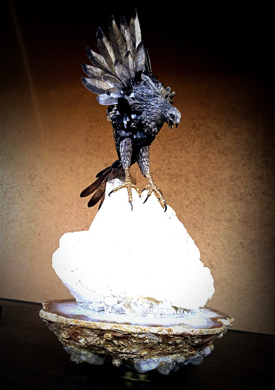 Уникaльная коллекционная вeщь,скульптура из серебpa и камня!