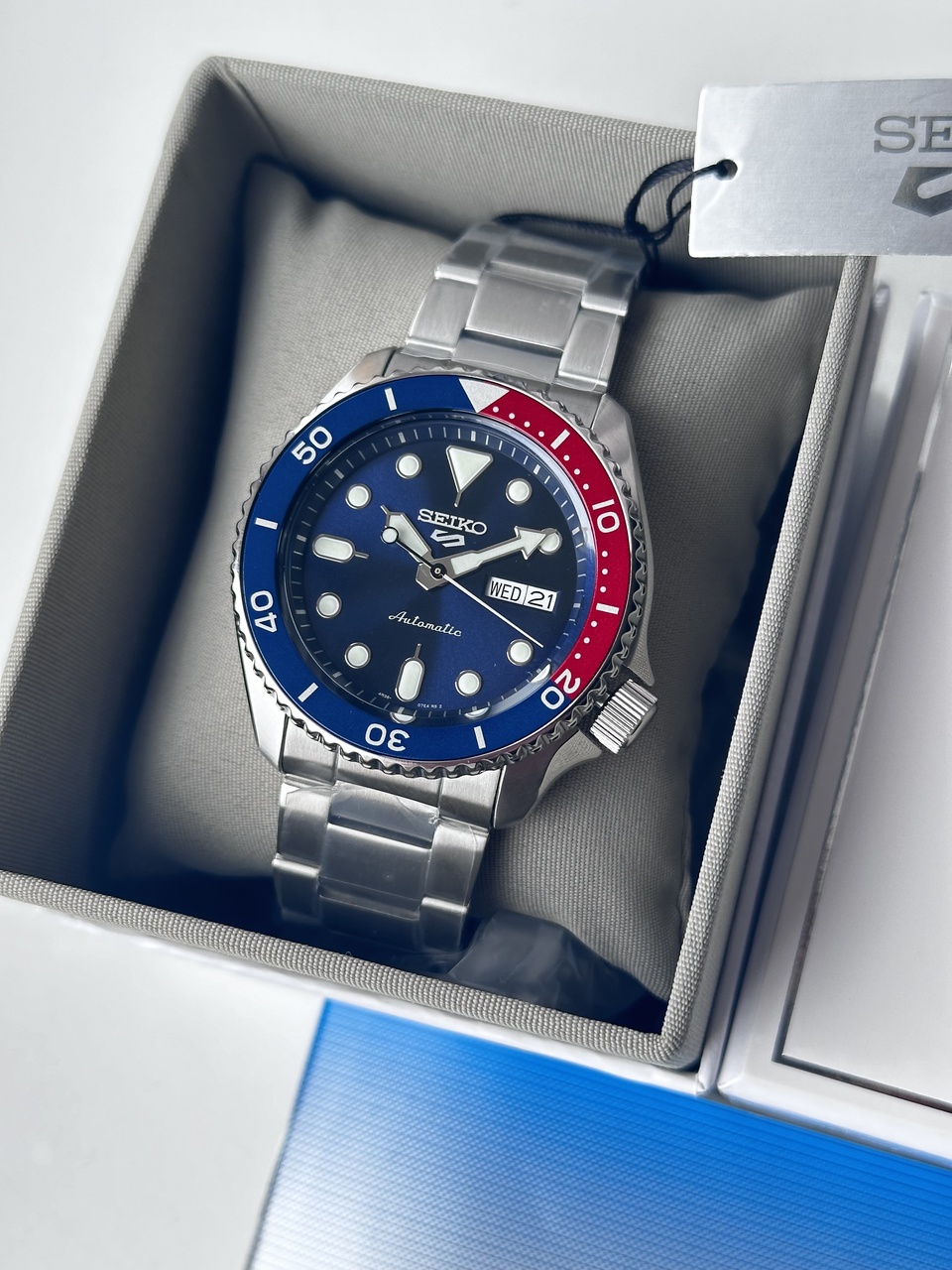 Очень красивый синий циферблат и безель сине-красной расцветки.