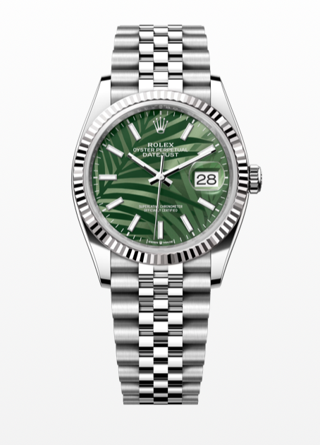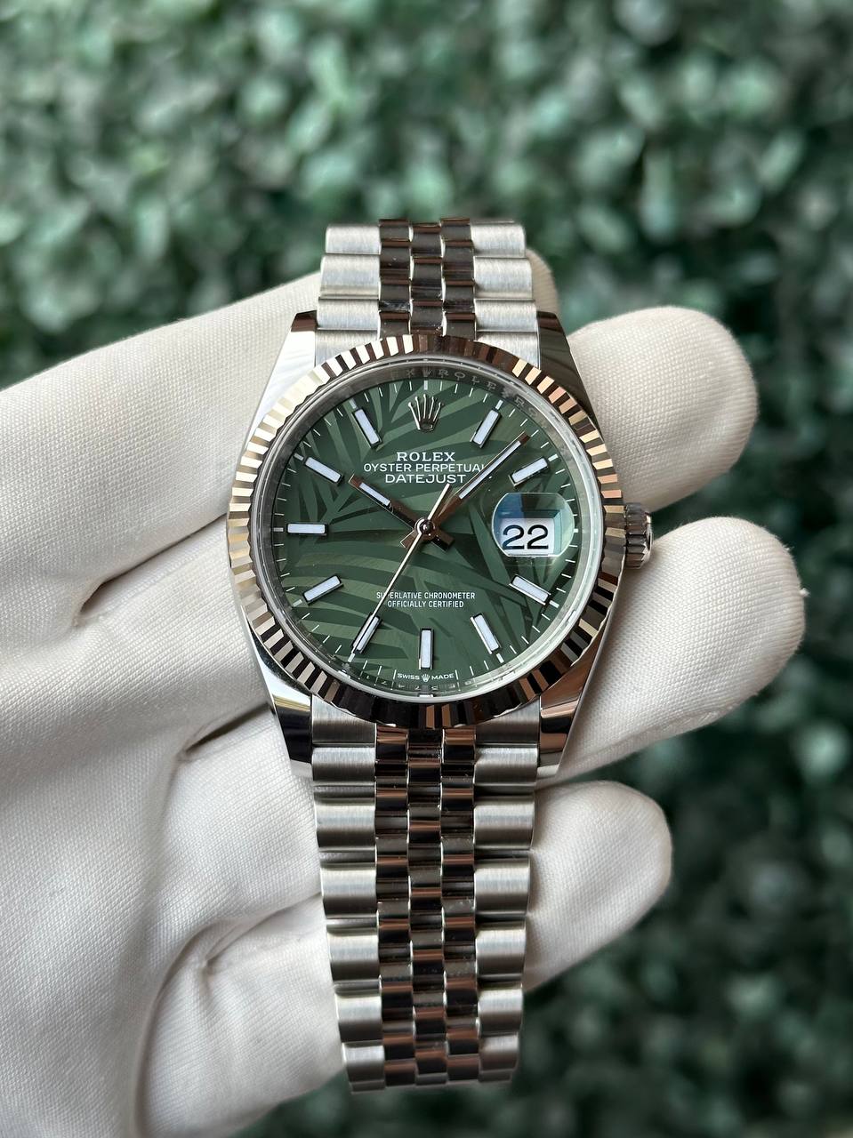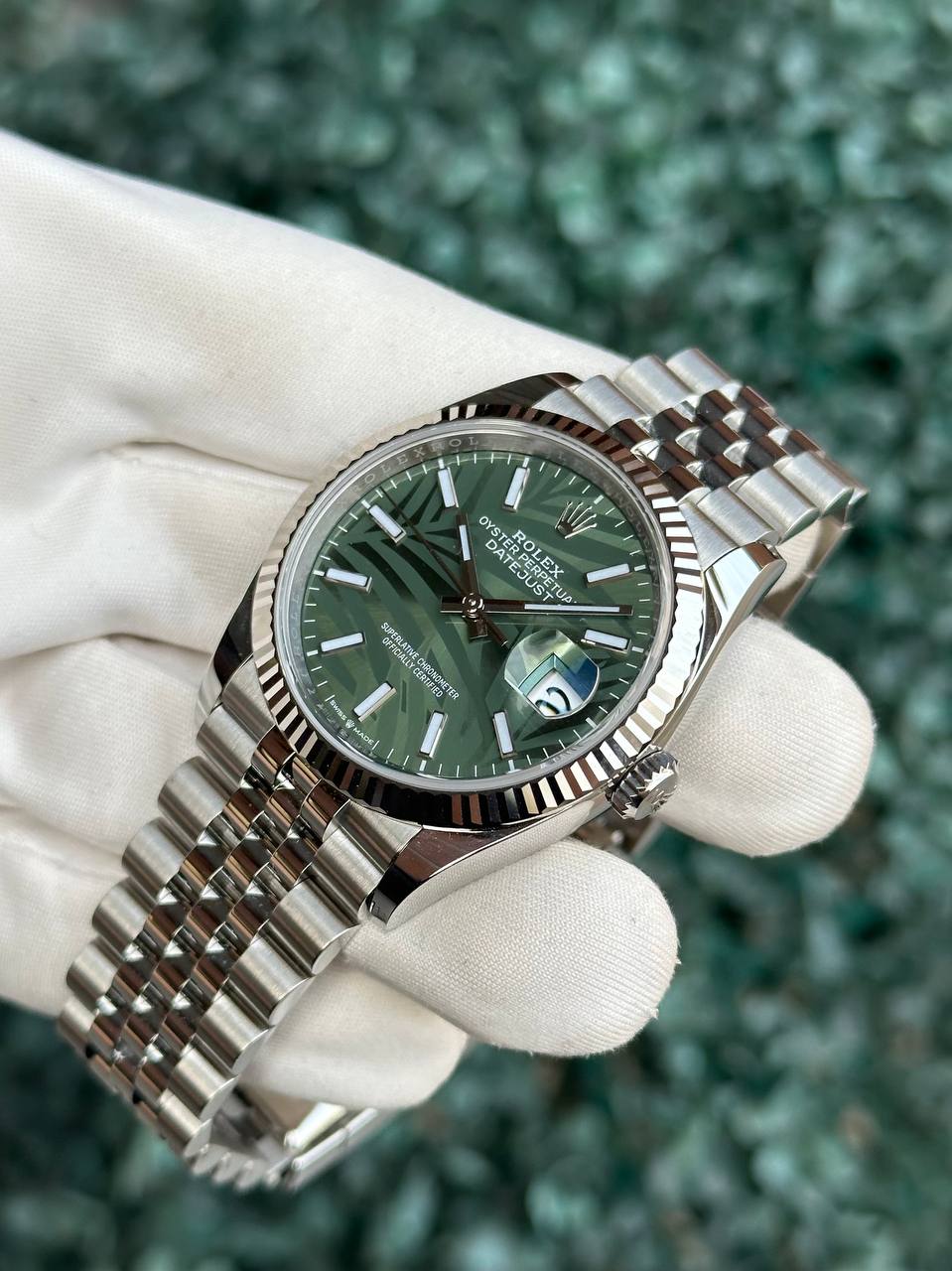 ROLEX DATEJUST 36MM 126234 OLIVE-GREEN,PALM-MOTIF