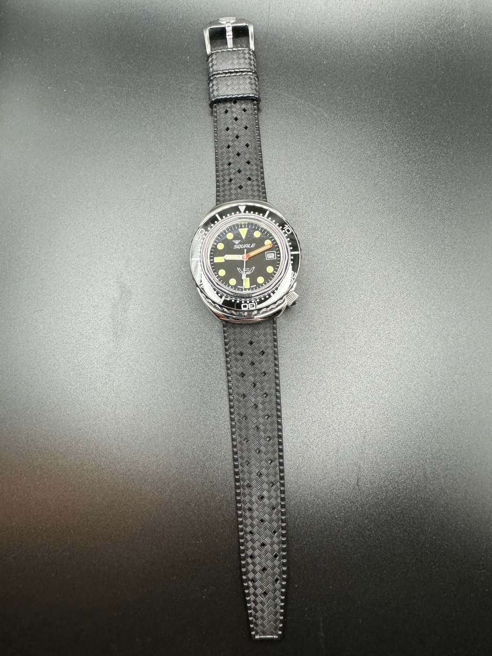 Незаслуженно малоизвестный у нас бренд - SQUALE, Швейцарская компания, производящая исключительно часы для дайверов, при этом изначально компания выпускала корпуса для дайверских моделей разных известных брендов, да так, что некоторые писали Squale на своих циферблатах, как символ качества! Но это уже история.