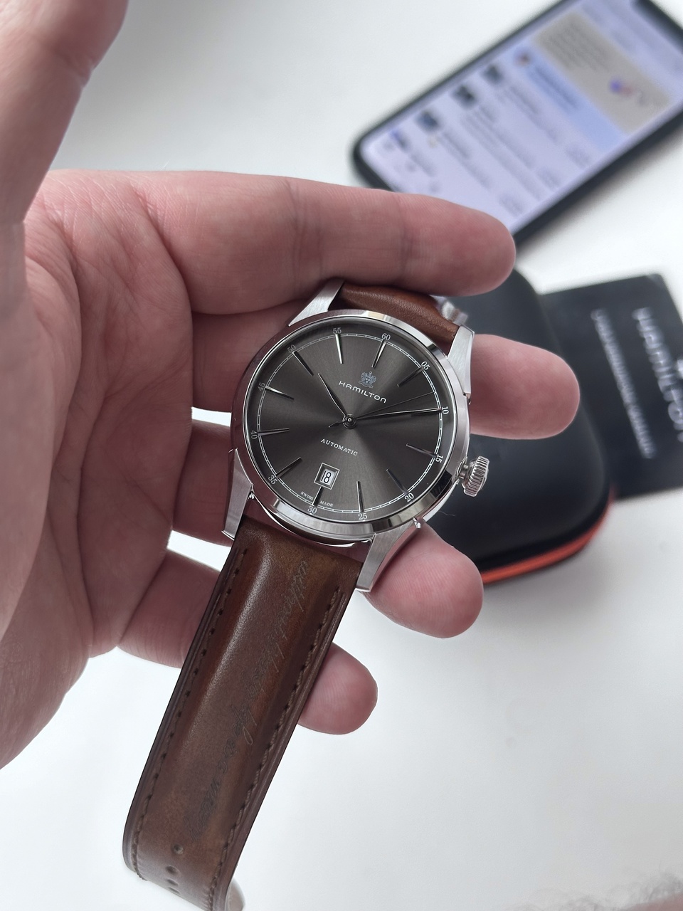 Безумно красивый графитовый цвет циферблат. Трёхстрелочник!