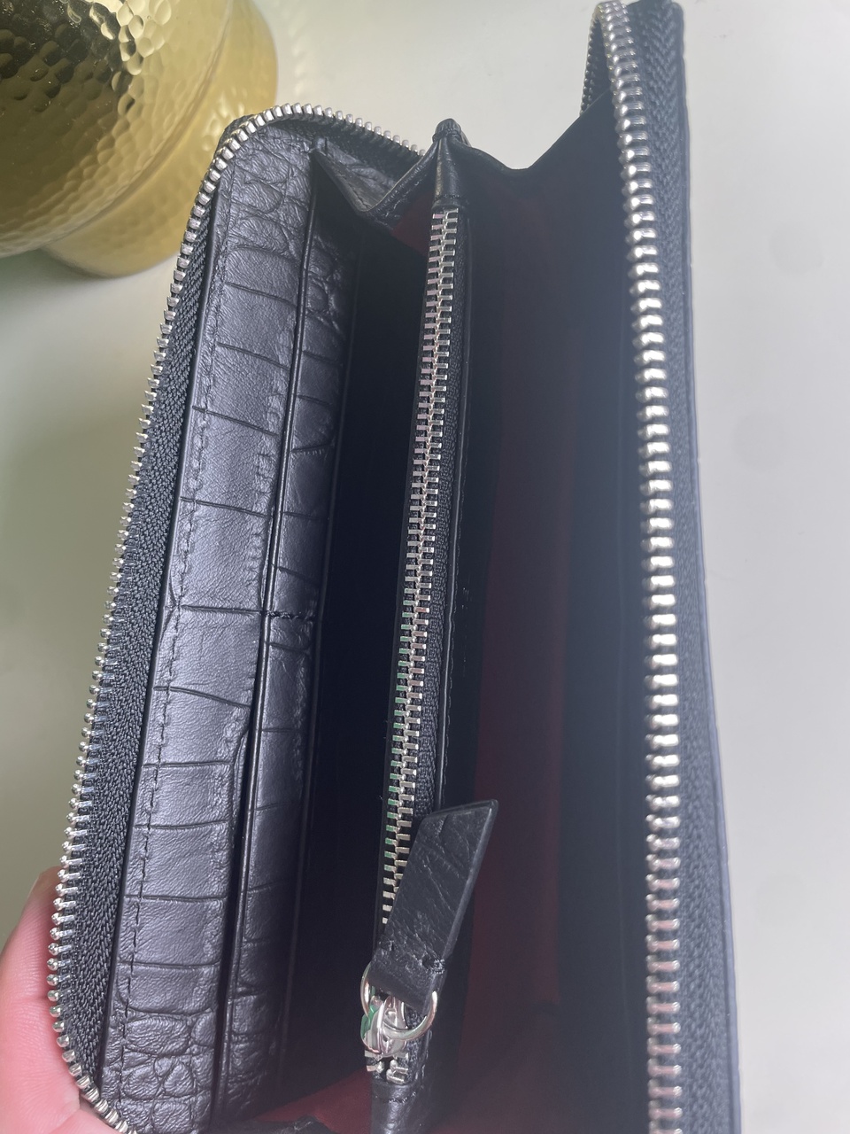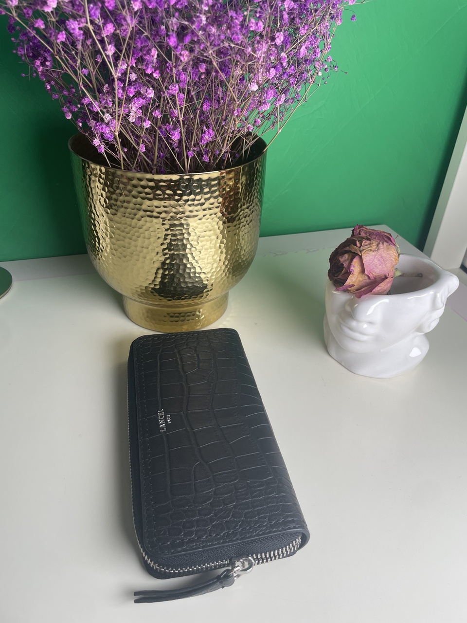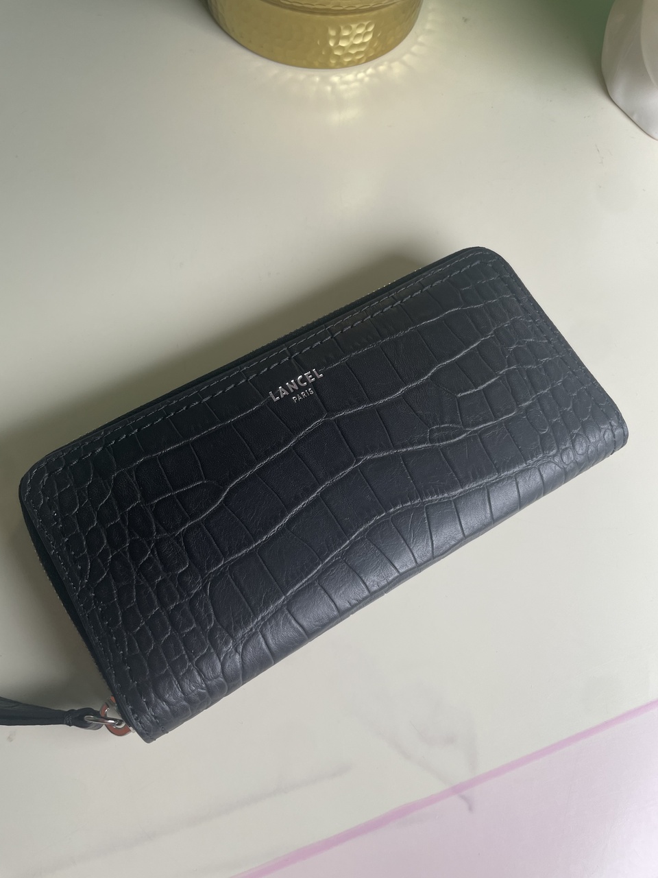 LANCEL PARIS - красивый черный кошелек с тиснением кожи под крокодила