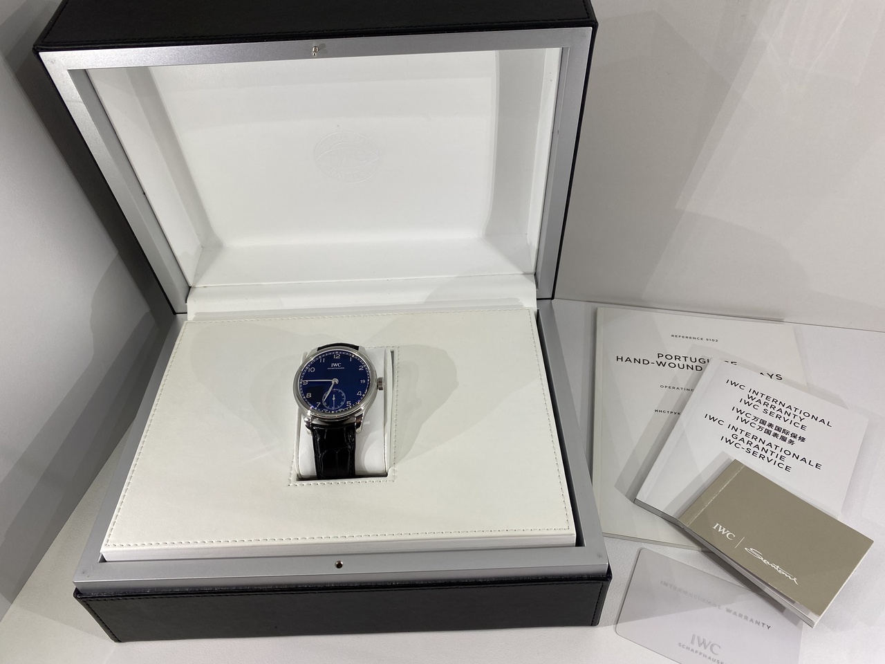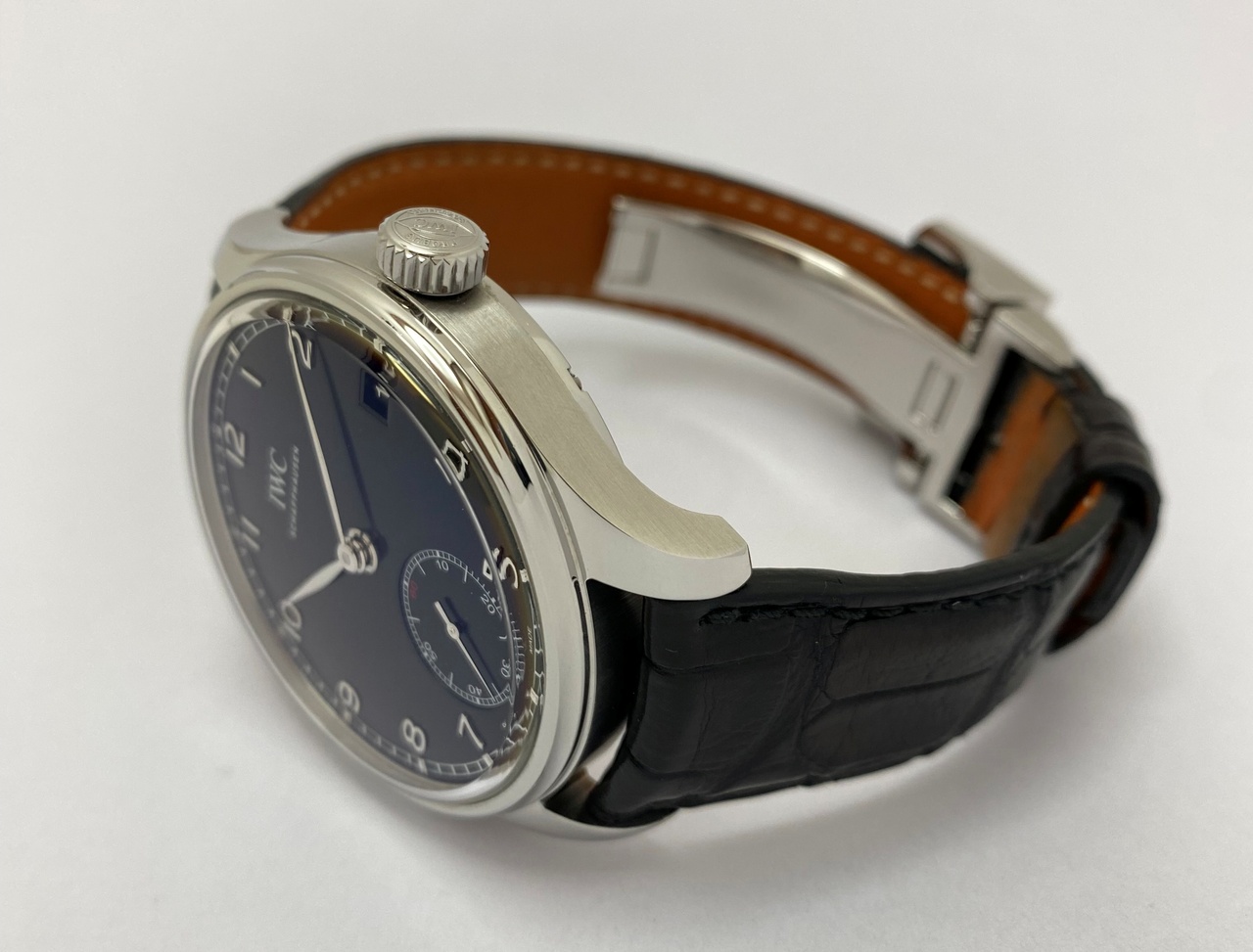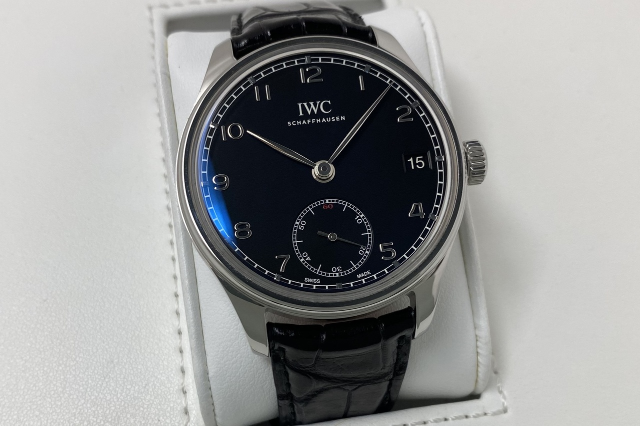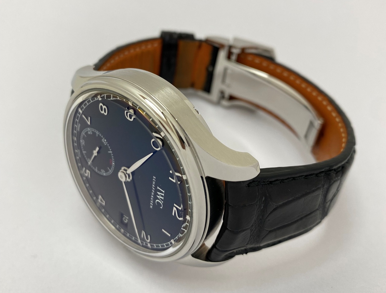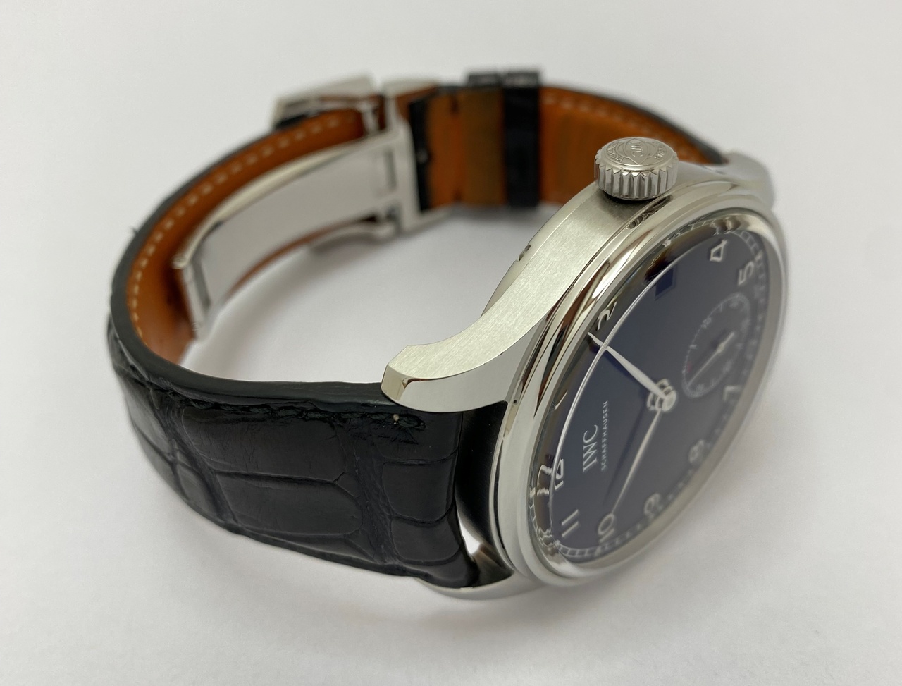IWC Portuguese Hand-Wound 8 Days 43,2mm (сталь/черный циферблат/черный аллигатор)