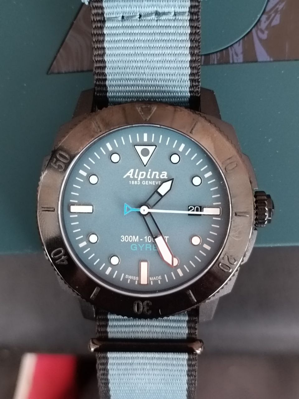 Дайвер от ALPINA//Seastrong Diver Gyre Gents Automatic//циферблат синяя дымка//доп. ремешок + шпильки + шпилькасъемник в комплекте// на ремешке НАТО//подарочная упаковка//
