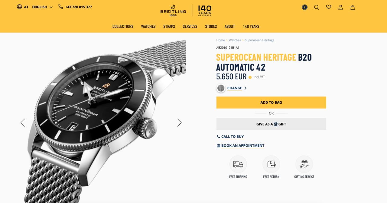 BREITLING SUPEROCEAN HERITAGE B20 AUTOMATIC 42 ММ AB2010121B1A1