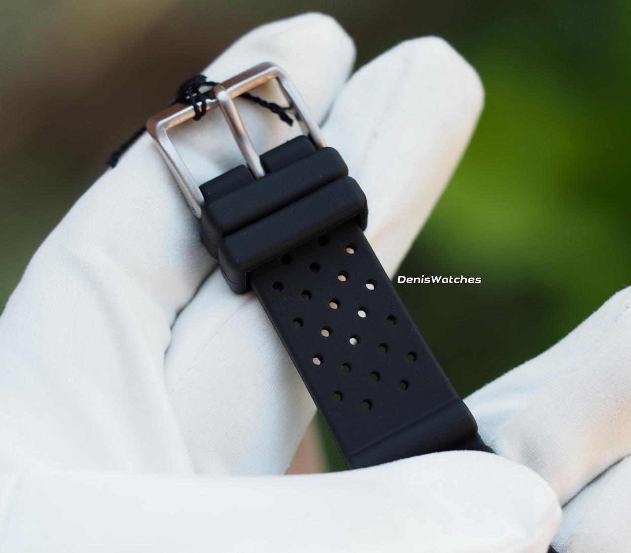 Фирменный яркий люм голубого цвета на стрелках и метках, а точка на безеле зеленая