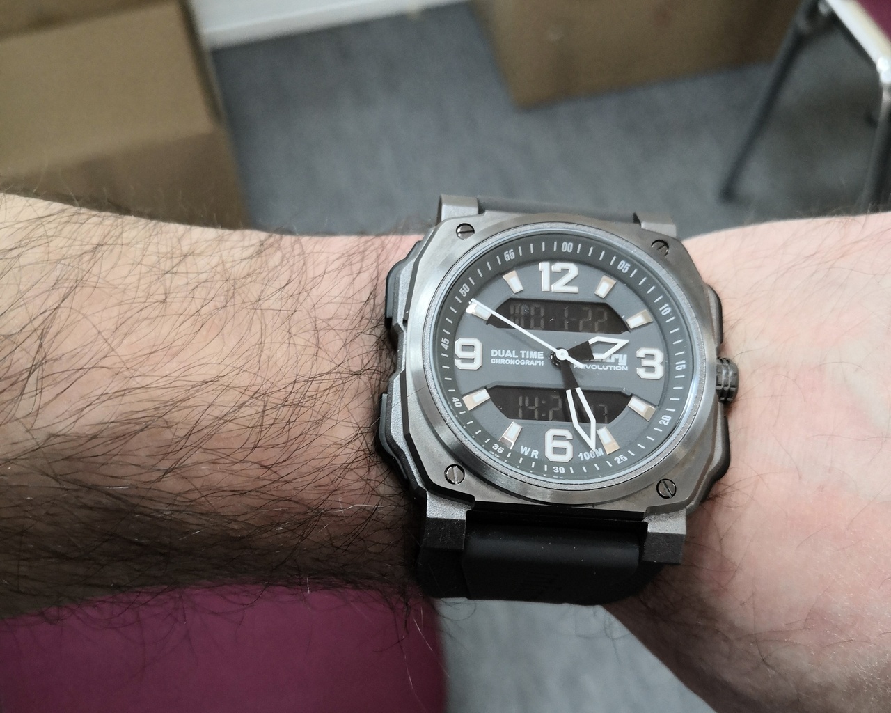 А вот по критерию кайфовости у Revolution все неплохо. По крайней мере, лично мне по душе, как на руке смотрятся эти крупные, заметные, но сдержанные часы с приятным самостоятельным дизайном.