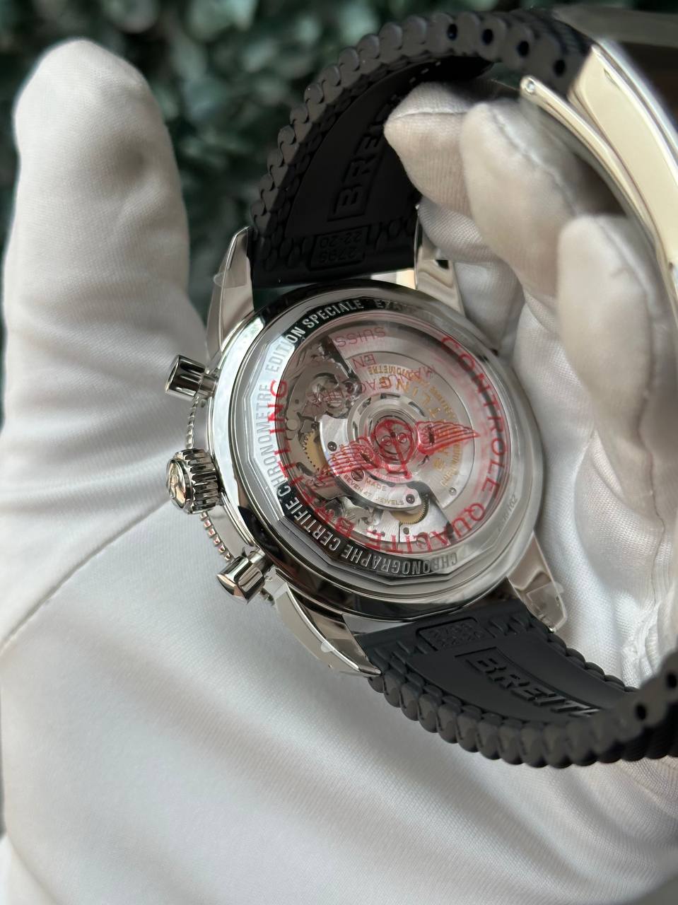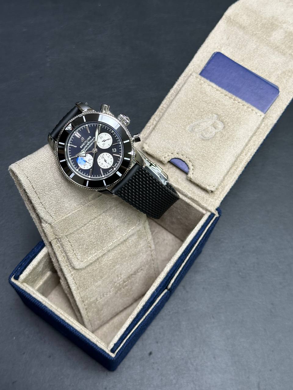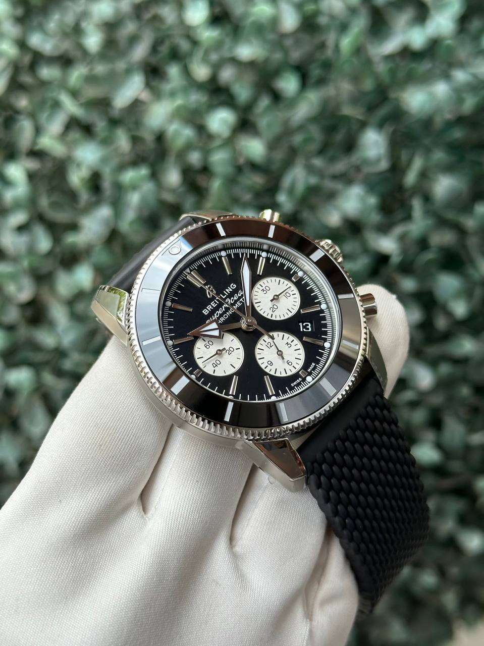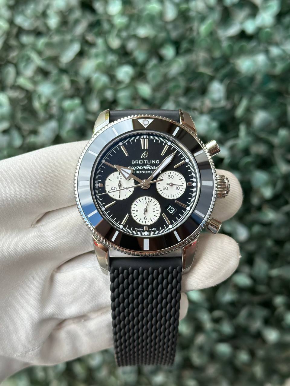 BREITLING SUPEROCEAN HERITAGE CHRONOGRAPH B01 44 MM AB0162121B1S1 / ЧЕРНО-БЕЛЫЙ ЦИФЕРБЛАТ / КАУЧУКОВЫЙ РЕМЕШОК
