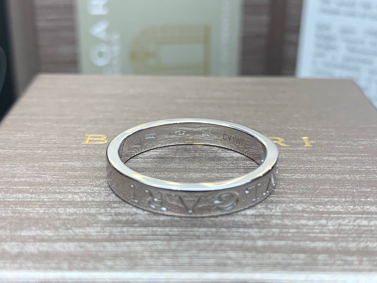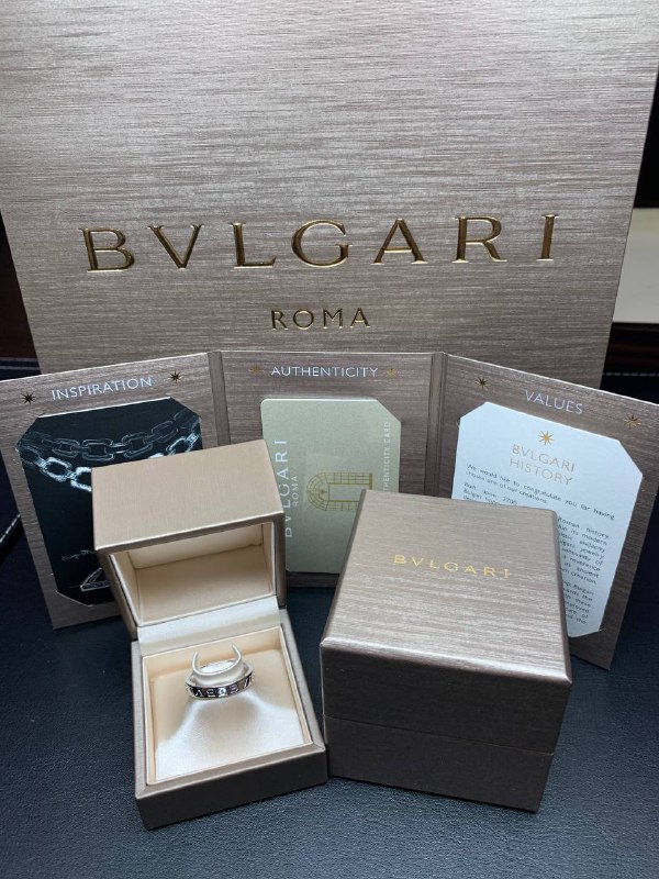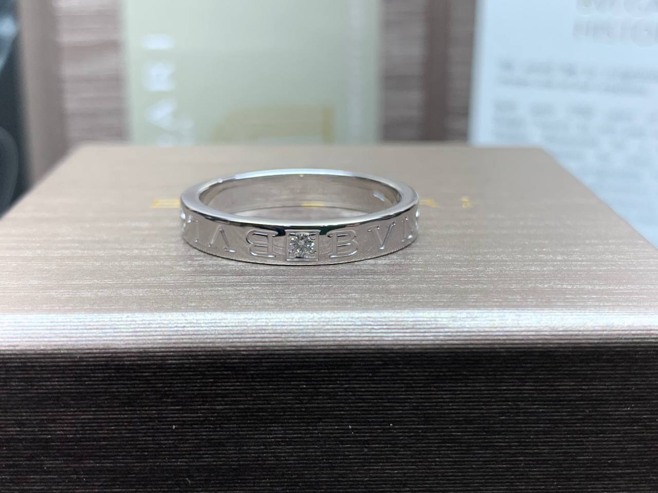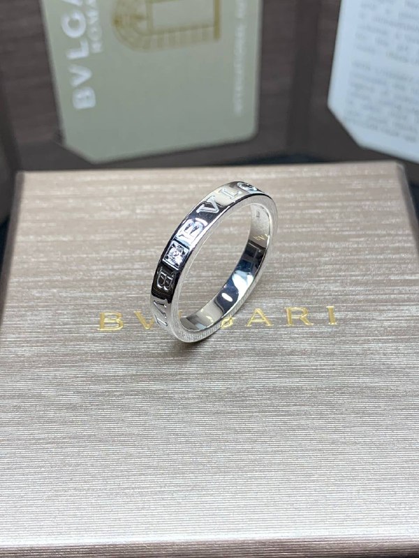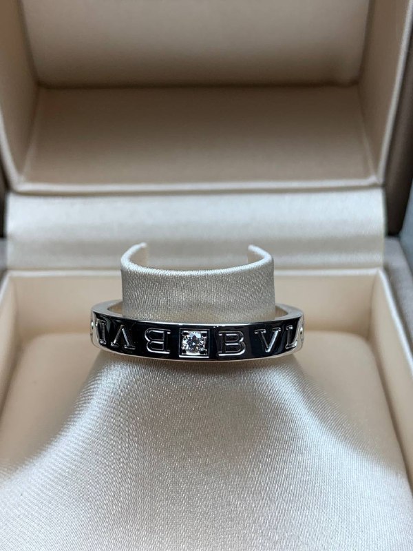 КОЛЬЦО *BVLGARI* BVLGARI В ОДНУ ПОЛОСУ,БЕЛОЕ ЗОЛОТО 18 КАРАТ, БРИЛЛИАНТ (РАЗМЕР 19,5/62)