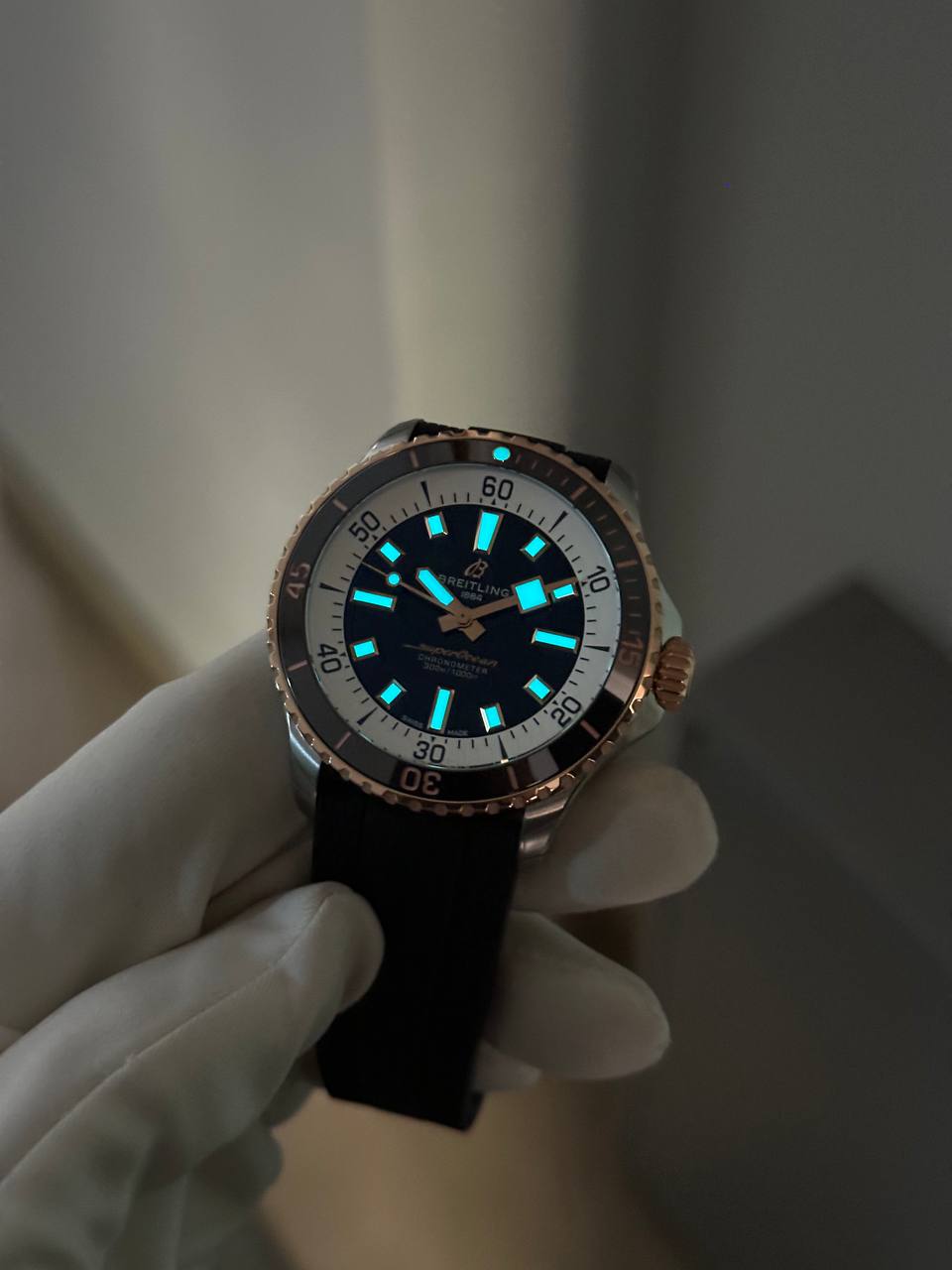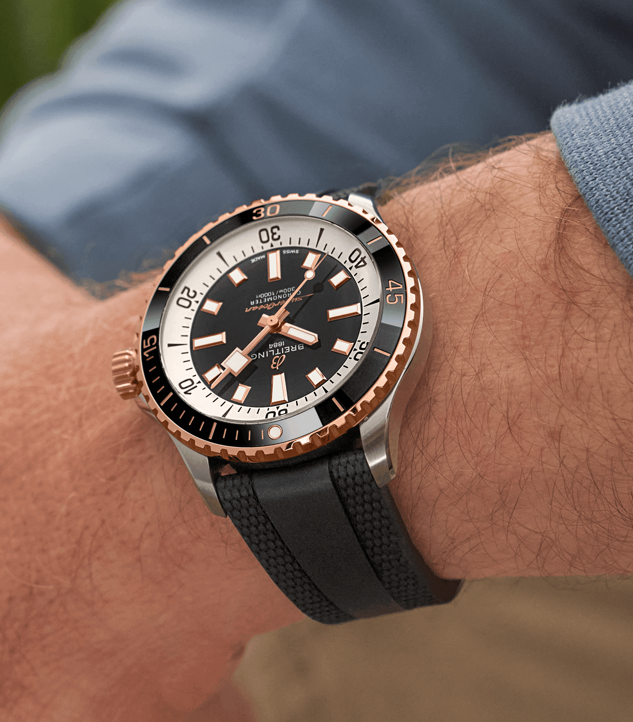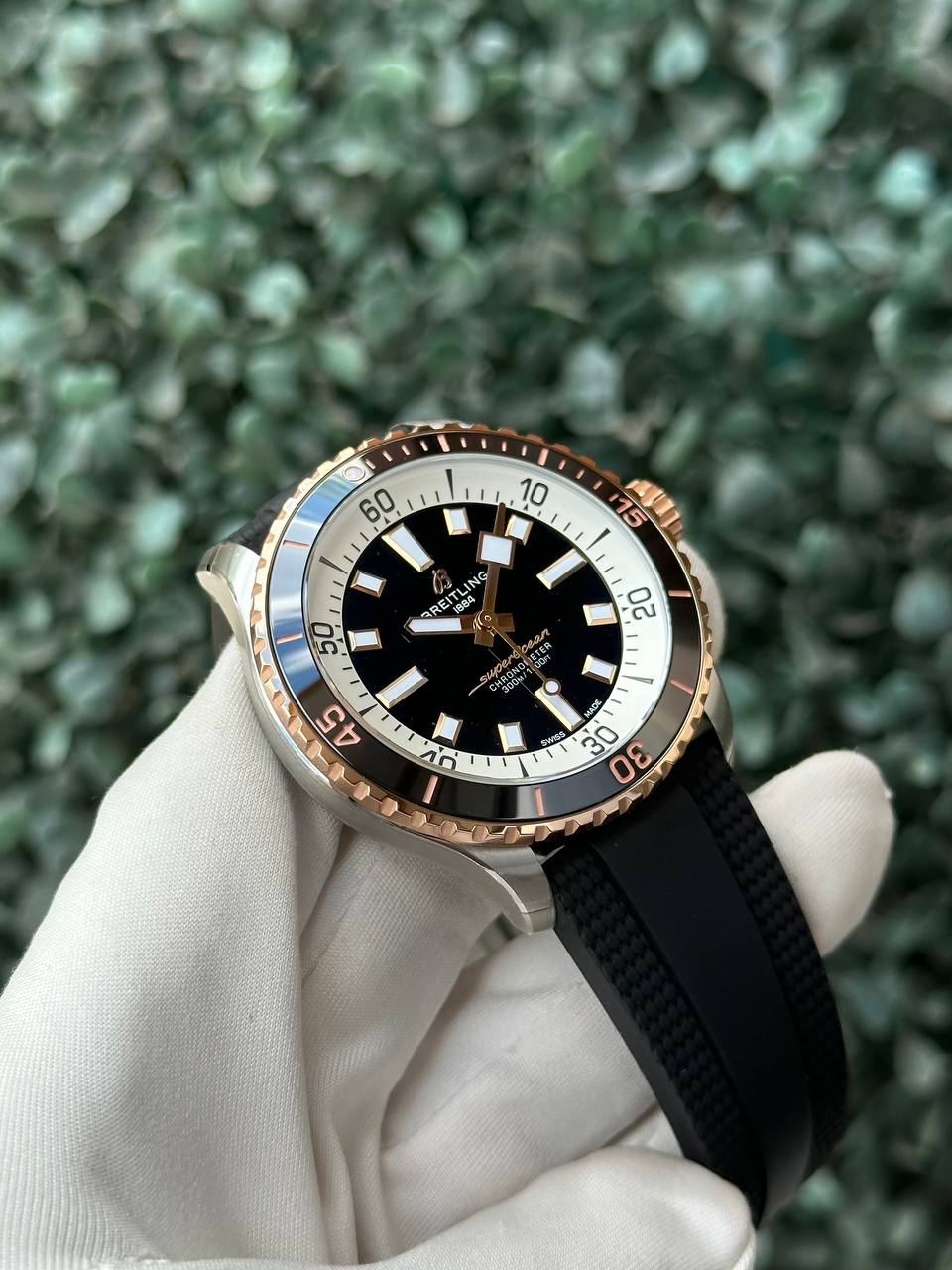 *BREITLING* SUPEROCEAN 42 MM U17375211B1S1/СТАЛЬНОЙ КОРПУС/ЗОЛОТОЙ БЕЗЕЛЬ/НА ЧЕРНОМ КАУЧУКЕ