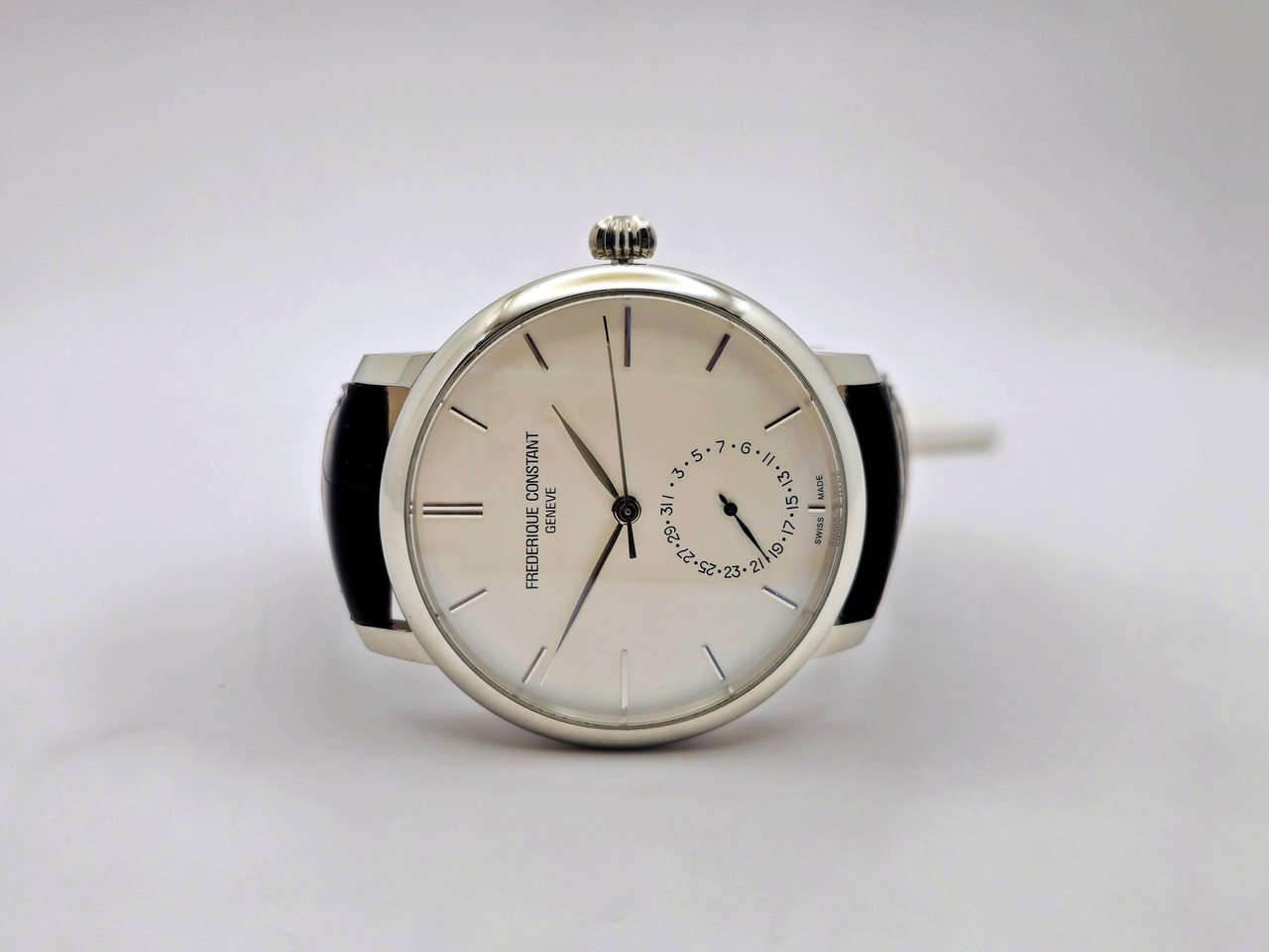 Идеальные часы для тех, кто не боится сделать выбор и знает цену своим словам и поступкам. Швейцарские часы Frederique Constant из коллекции Slimline Manufacture — это превосходные швейцарские часы с мануфактурным механизмом Frederique Constant FC-710 в 42мм стальном корпусе. Этот автоматический механизм оснащен индикацией стрелочной даты на 6 часах .