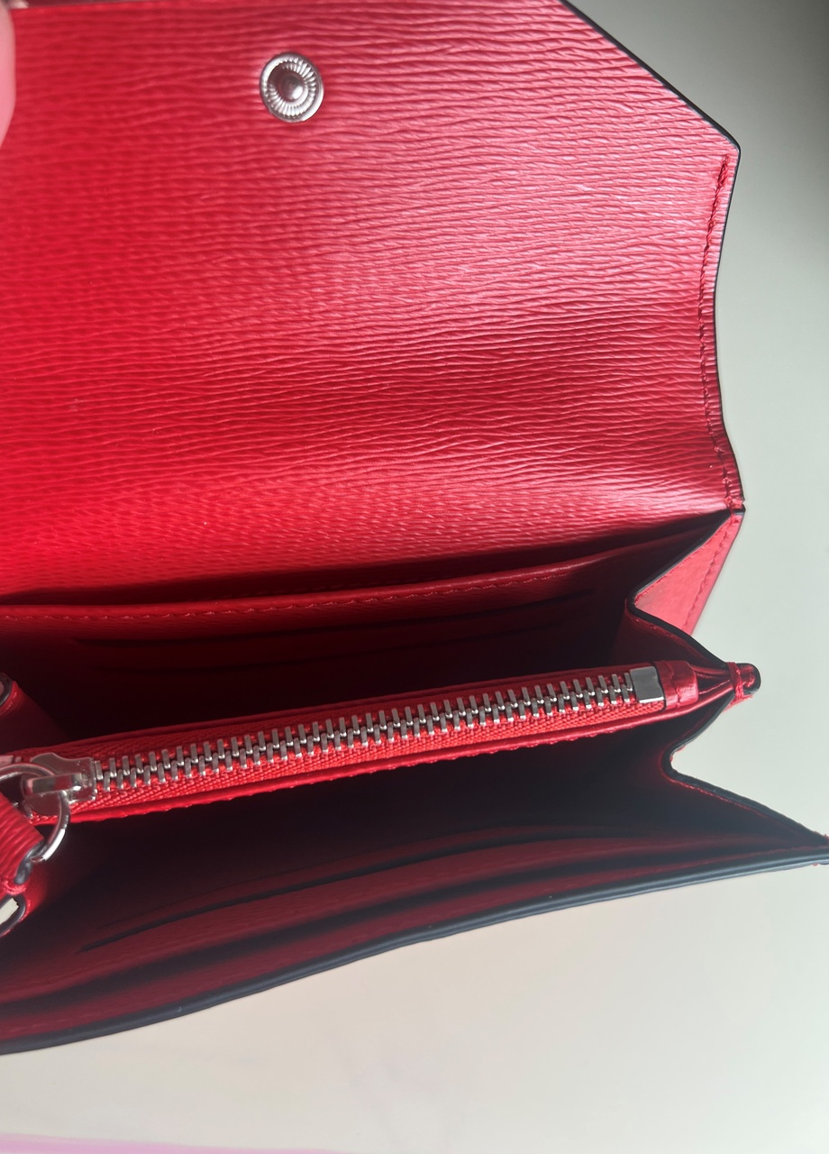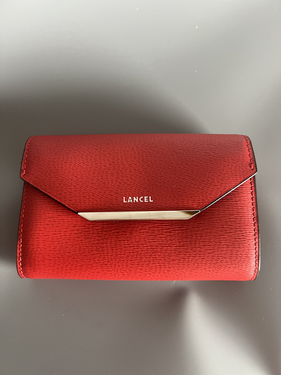 LANCEL PARIS - компактный женский кошелек из прочной тисненной износостойкой кожи (красный)